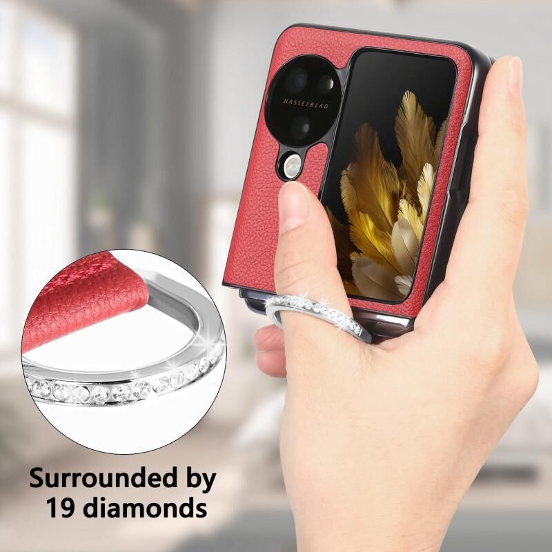 Για OPPO Βρείτε N3 Flip Litchi PU PU Diamond-encrusted δαχτυλίδι υπόθεση τηλεφώνου (κόκκινο)
