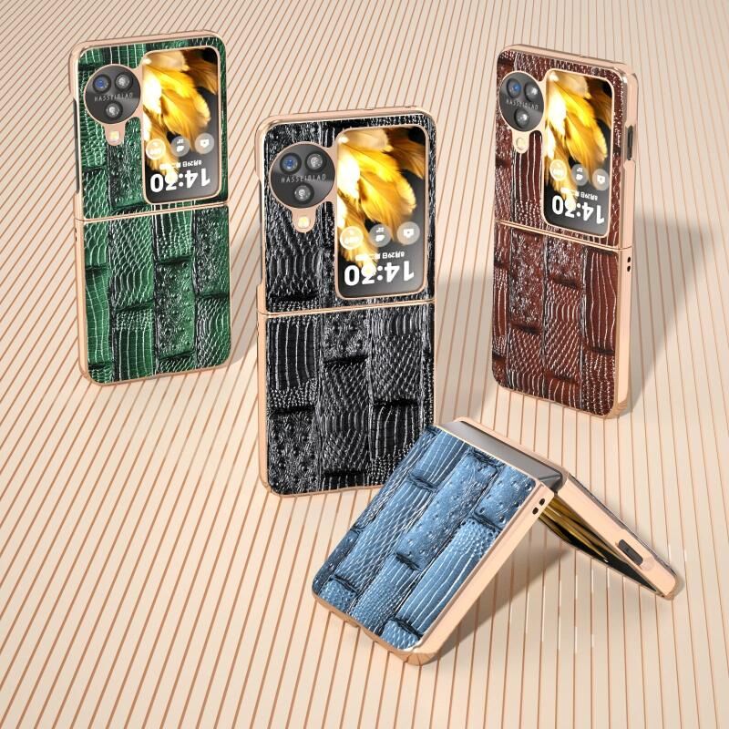 Θήκη τηλεφώνου από δέρμα με υφή Mahjong και ηλεκτρολυτική επίστρωση για OPPO Find N3 Flip Nano (Μπλε)