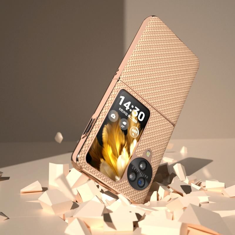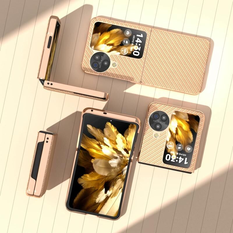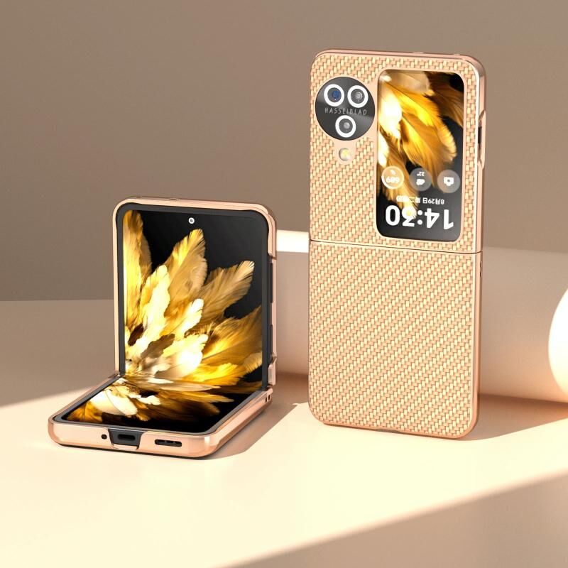 Για OPPO Βρείτε N3 Flip Nano Electroplating Carbon Fiber Υφή τηλέφωνο υπόθεση (Χρυσός)