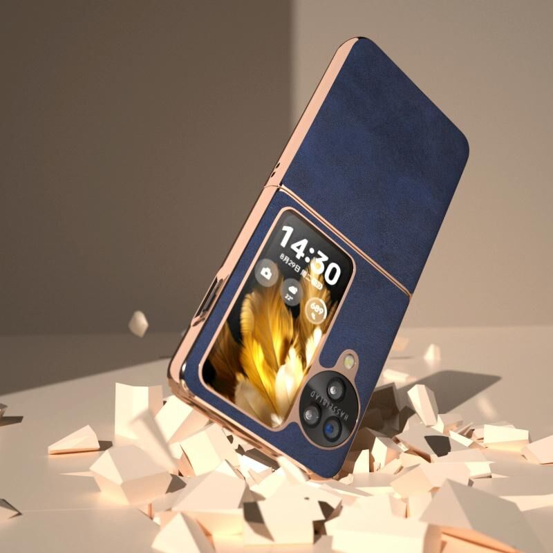 Για OPPO Βρείτε N3 Flip Nano ηλεκτρολυτική διπλού χρώματος δέρμα αγελάδας υφή Προστατευτική θήκη τηλεφώνου (Μπλε)