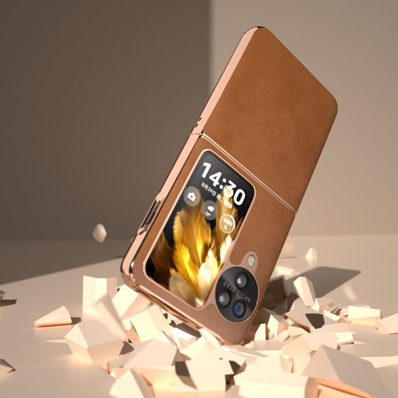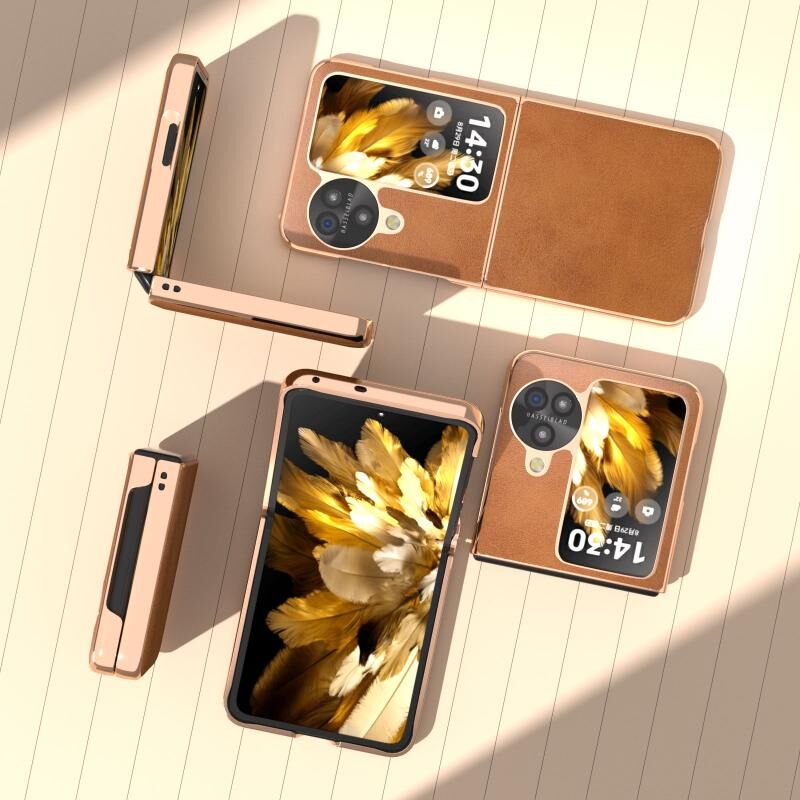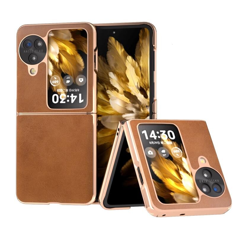 Για OPPO Βρείτε N3 Flip Nano ηλεκτρολυτική διπλού χρώματος δέρμα αγελάδας υφή Προστατευτική θήκη τηλεφώνου (Καφέ)