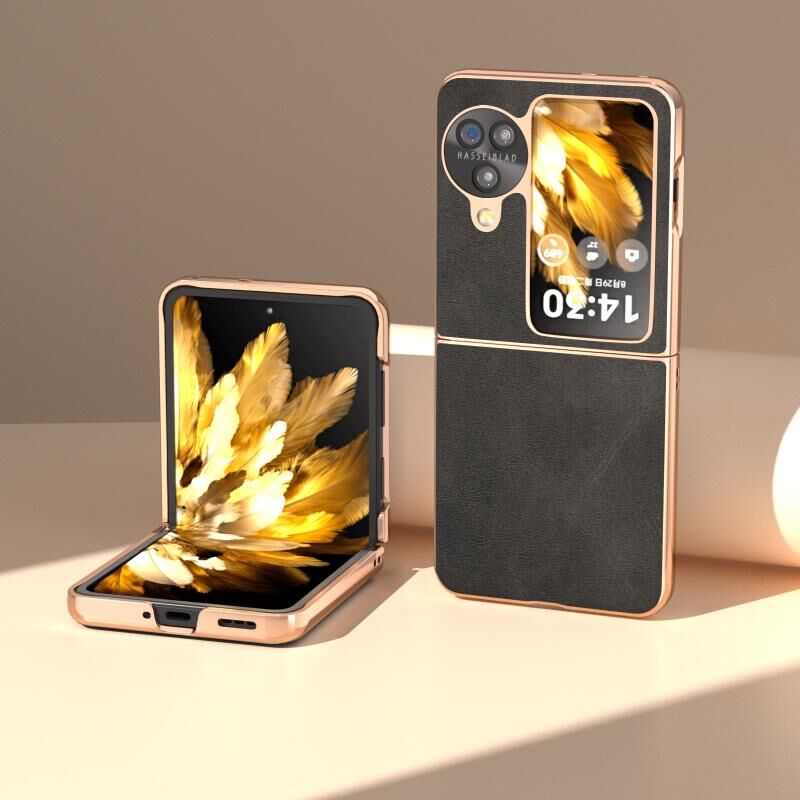 Για OPPO Βρείτε N3 Flip Nano Plating Cowhide Υφή PU τηλέφωνο υπόθεση (Μαύρο)