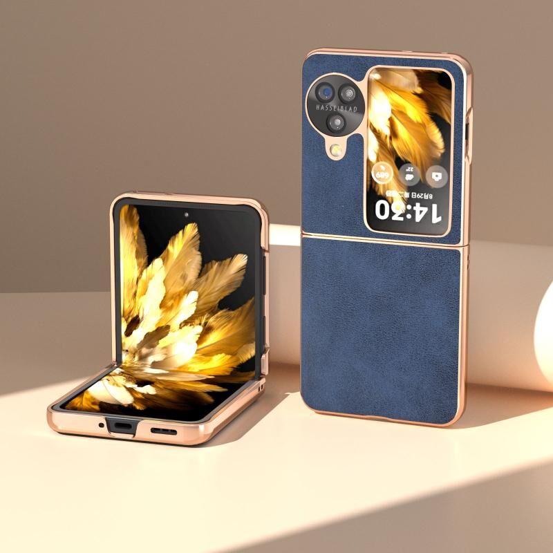 Για OPPO Βρείτε N3 Flip Nano Plating Cowhide Υφή PU τηλέφωνο υπόθεση (Μπλε)