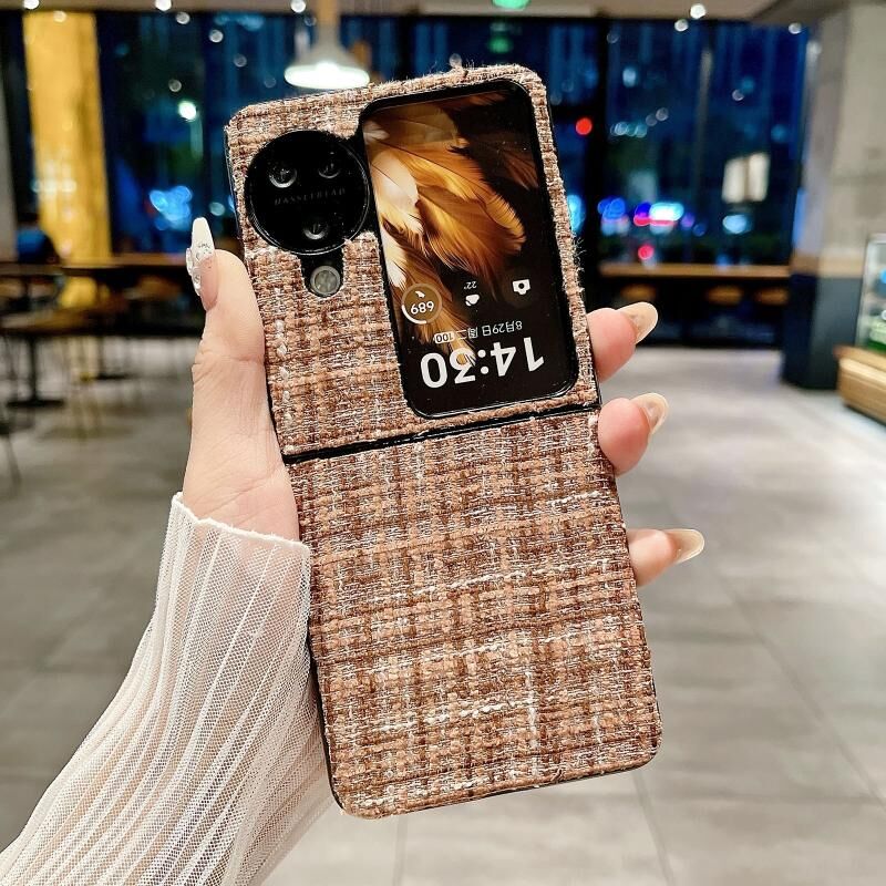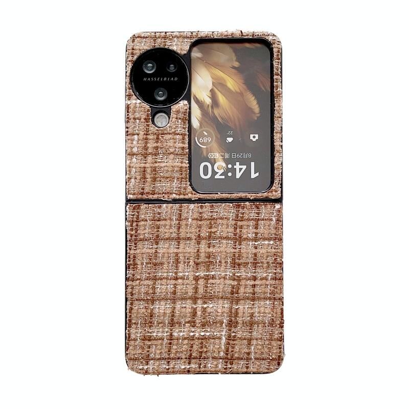 Για OPPO Βρείτε N3 Flip καρό ύφασμα PC Προστατευτική θήκη τηλεφώνου (καφέ)