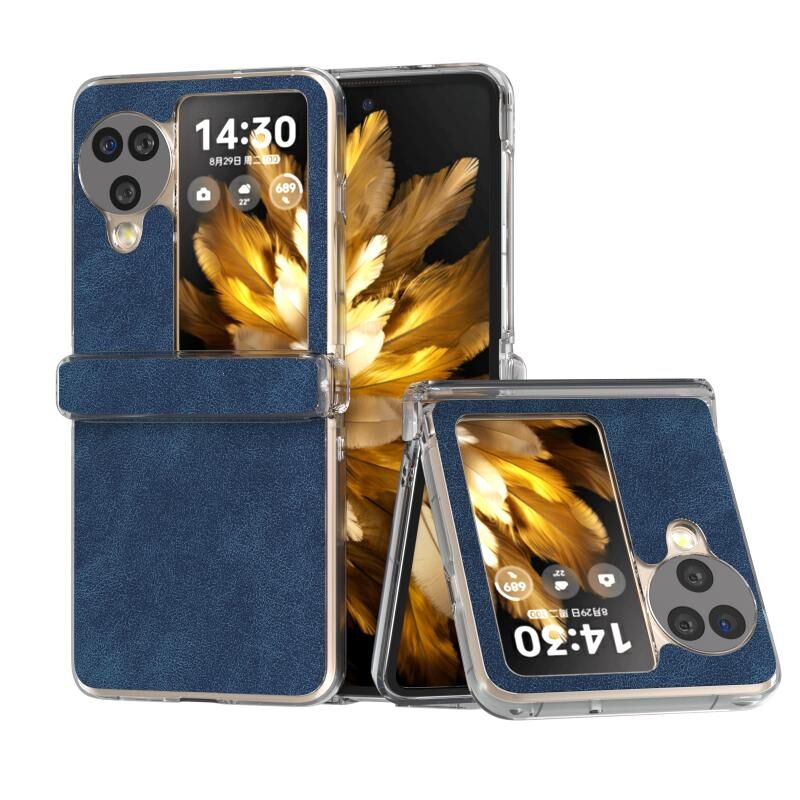 Για OPPO Βρείτε N3 Flip τρία μέρη PU δέρμα διαφανή Edge τηλέφωνο υπόθεση (Μπλε)