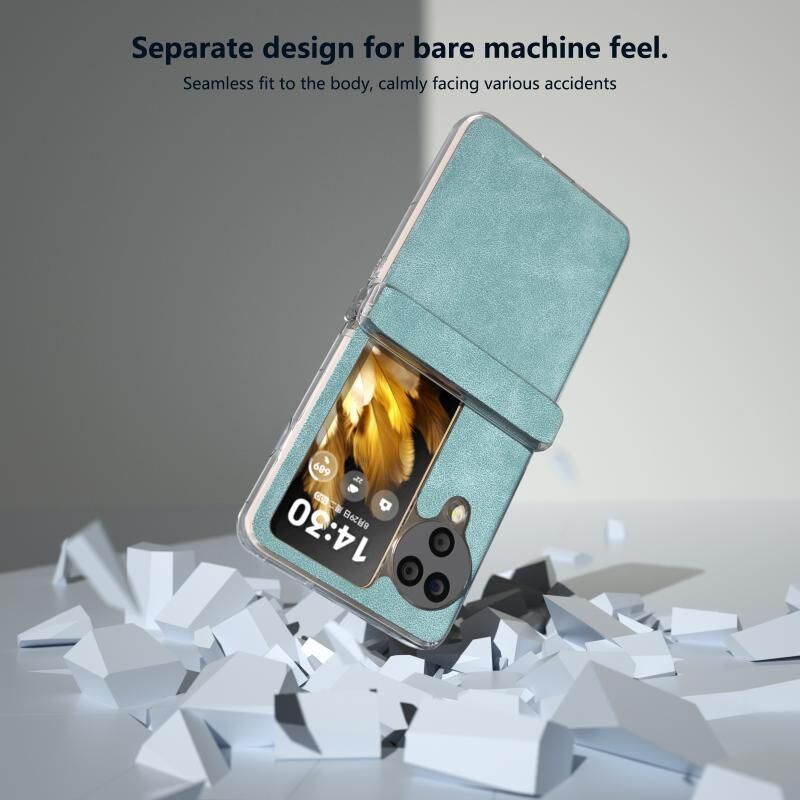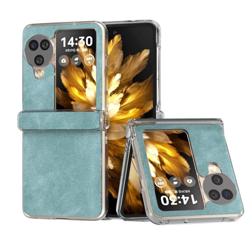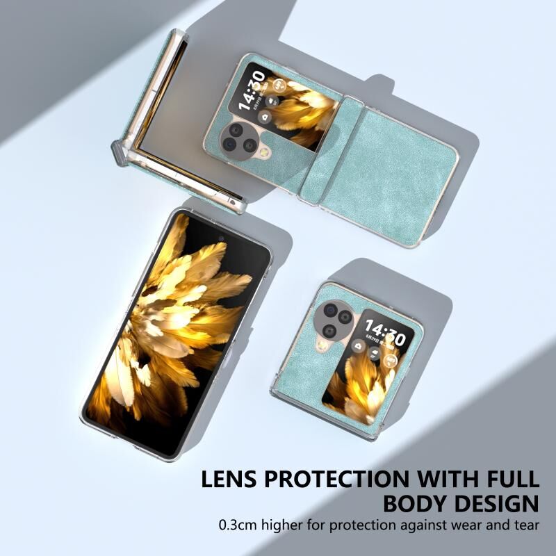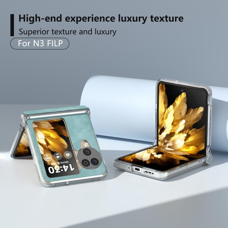 Για OPPO Βρείτε N3 Flip τρία μέρη PU δέρμα διαφανή Edge τηλέφωνο υπόθεση (Ανοιχτό μπλε)