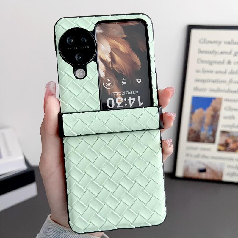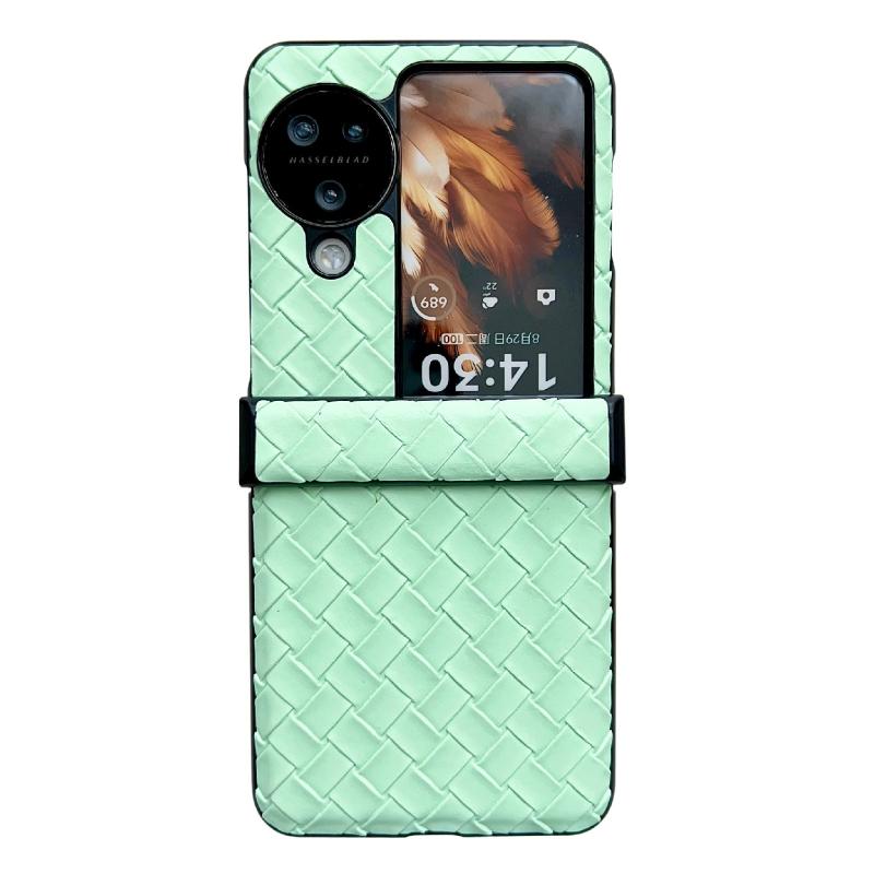 For OPPO Find N3 Flip Three-piece Set Woven Texture Folding PU Phone Case(Green)