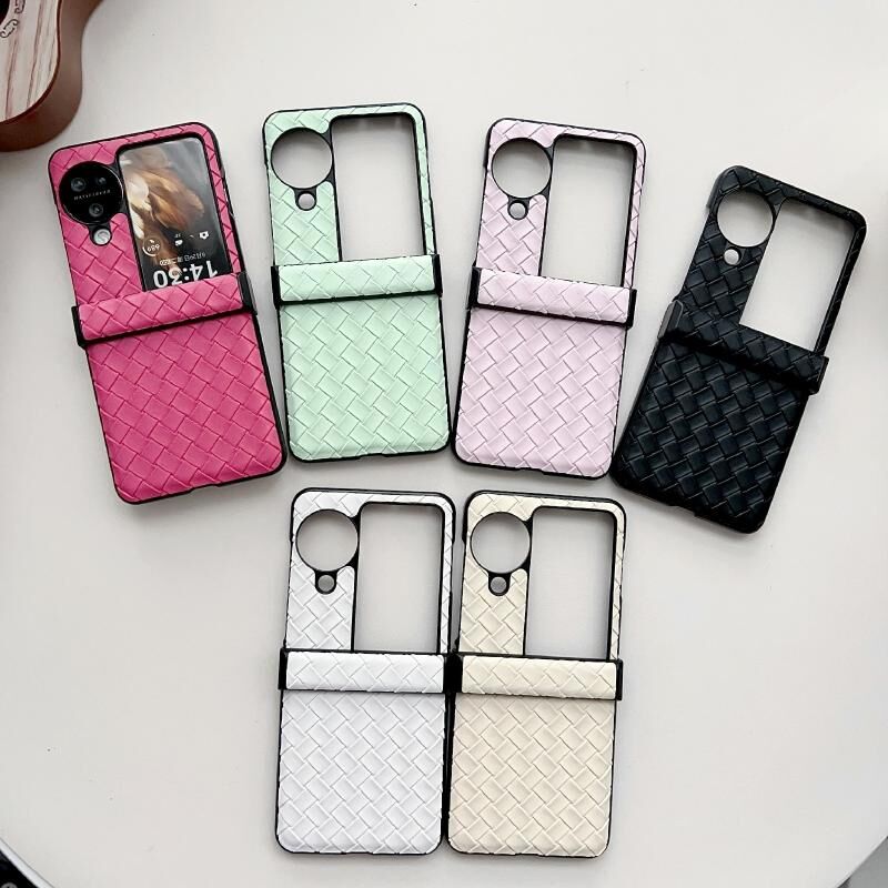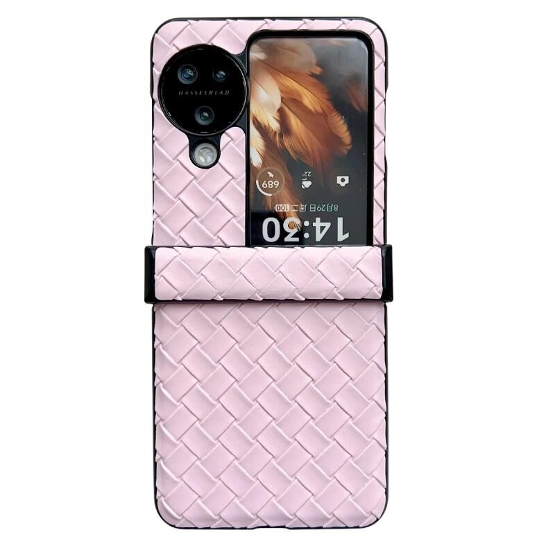 Για OPPO Find N3 Flip Σετ Τριών Τεμαχίων Θήκη Τηλεφώνου Πτυσσόμενη PU με Υφή Υφαντού (ρόζ)