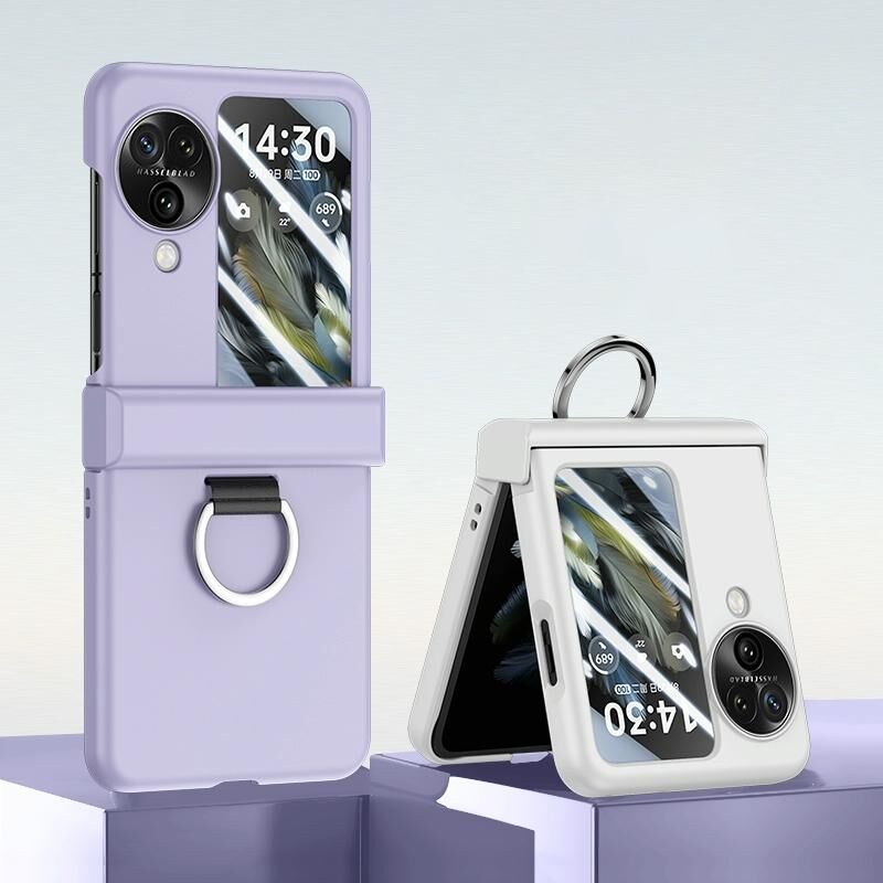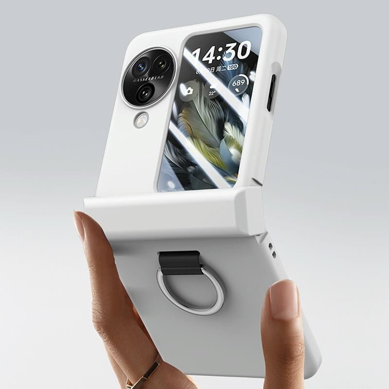 Θήκη τηλεφώνου με λεπτό δακτύλιο για OPPO Find N3 Flip, με αίσθηση λεπτού δέρματος και άρθρωση (Λευκό)