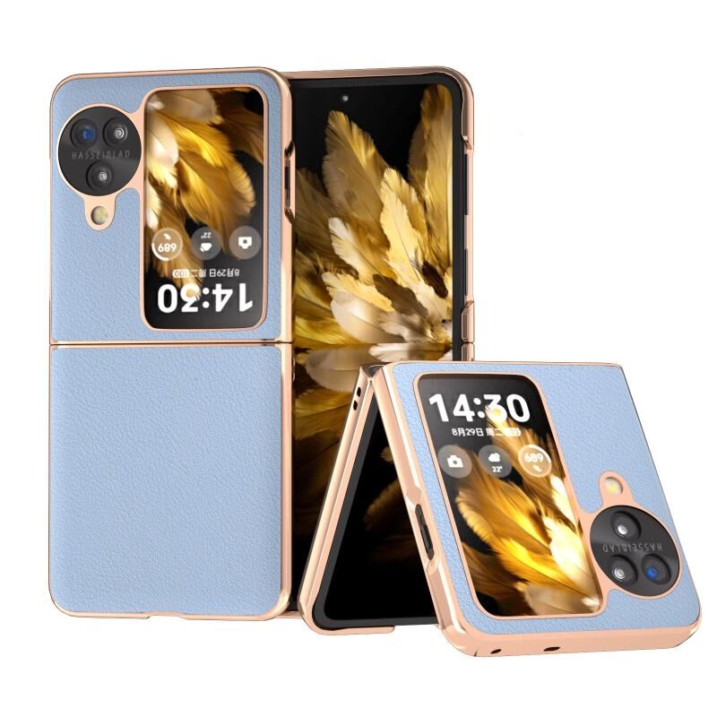 Θήκη τηλεφώνου από γνήσιο δέρμα με νανο-επίχρυση, σειρά Waves για OPPO Find N3 Flip (Μπλε)
