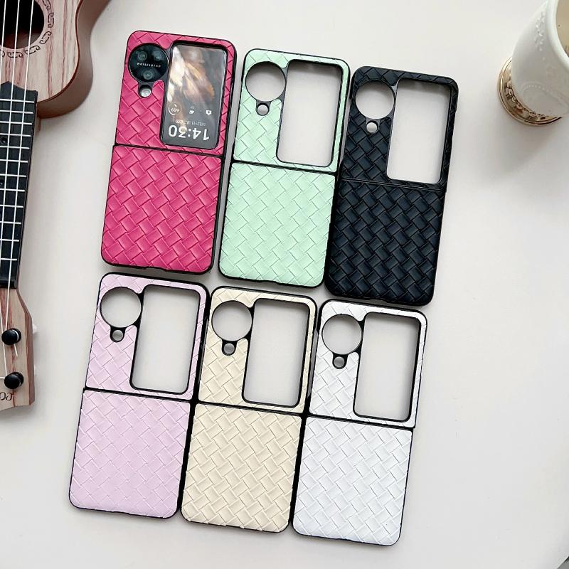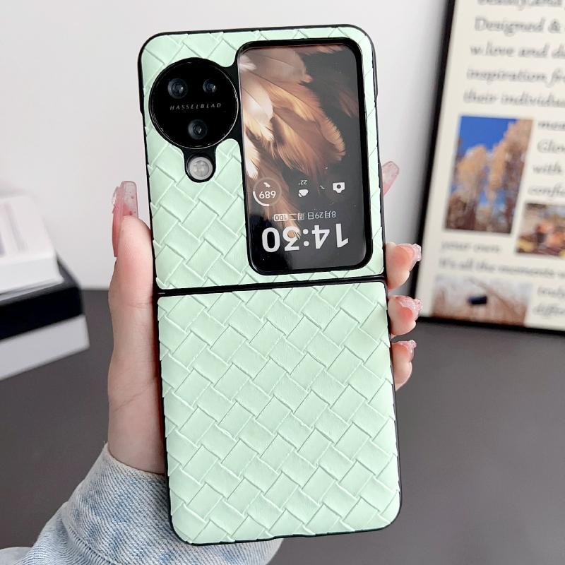 For OPPO Find N3 Flip Woven Texture Folding PU Phone Case(Green)