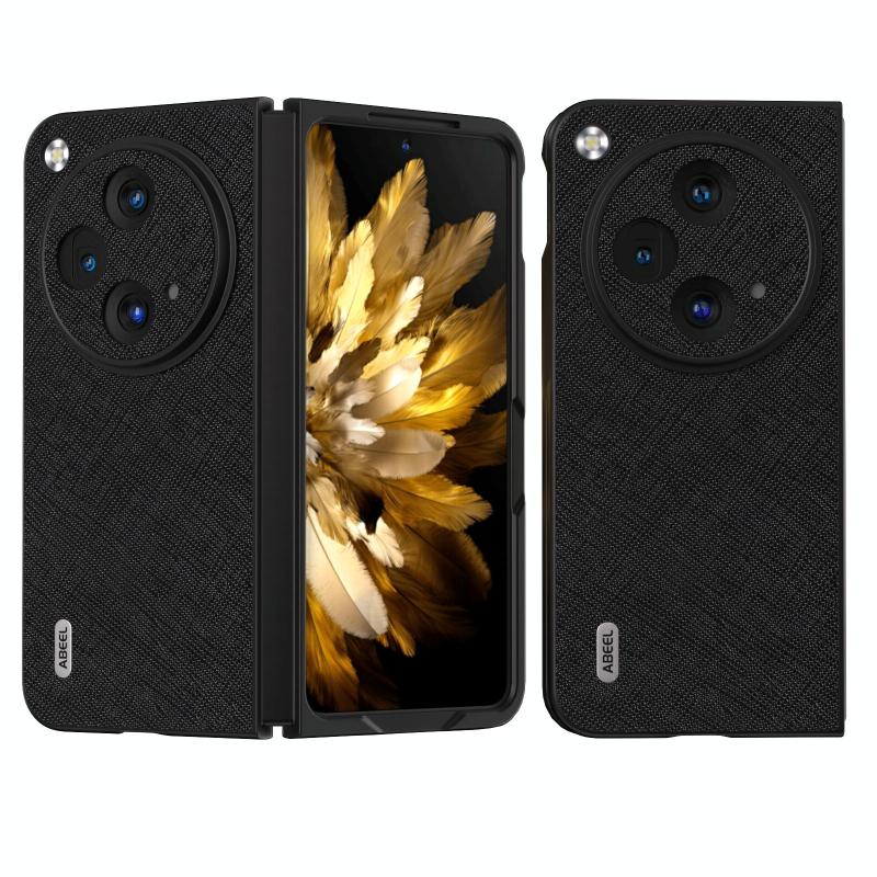 For OPPO Find N3 / OnePlus Open ABEEL Cross Texture Genuine Leather Phone Case(Black)