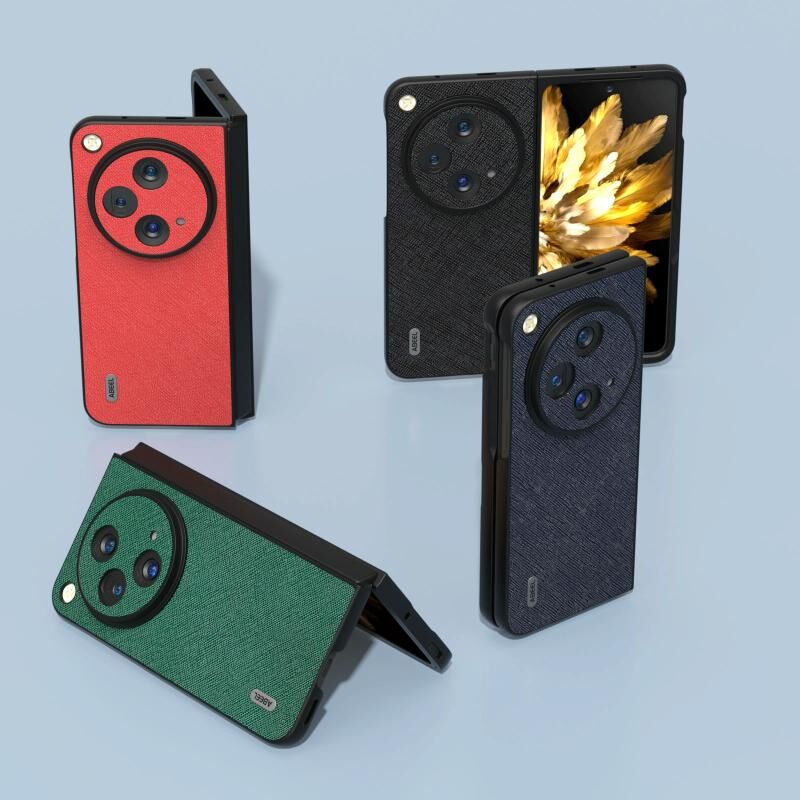 Θήκη τηλεφώνου από γνήσιο δέρμα με ανάγλυφη υφή ABEEL για OPPO Find N3 / OnePlus Open (Μαύρο)