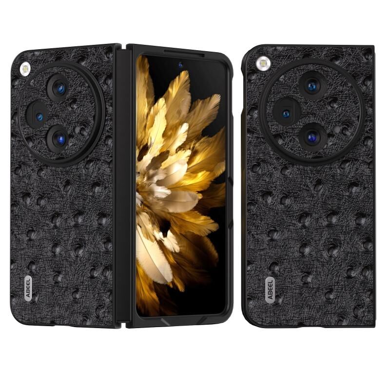Θήκη τηλεφώνου από γνήσιο δέρμα στρουθοκάμπου με υφή για OPPO Find N3 / OnePlus Open (Μαύρο)
