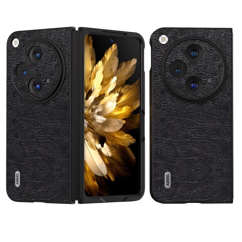 Θήκη τηλεφώνου ABEEL Retro Litchi Texture PU για OPPO Find N3 / OnePlus Open (Μαύρο)