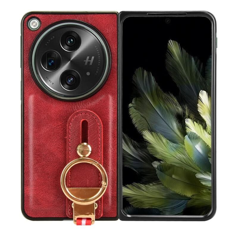 Για OPPO Βρείτε N3 / OnePlus Open Wristband δέρμα πίσω τηλέφωνο υπόθεση (κόκκινο)
