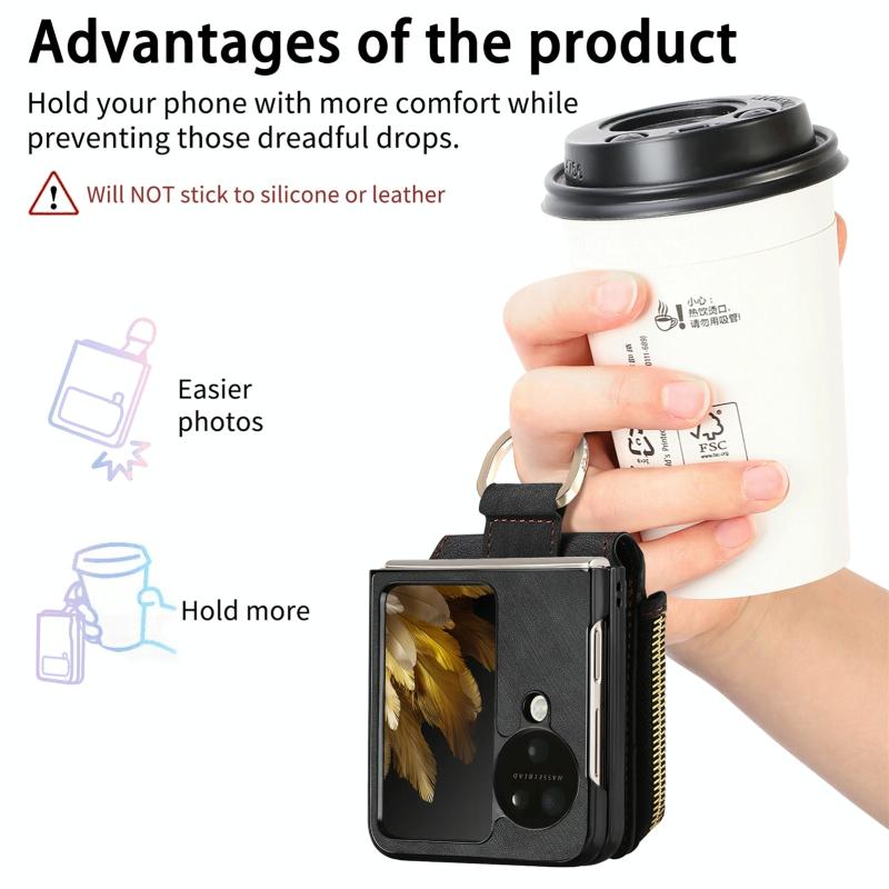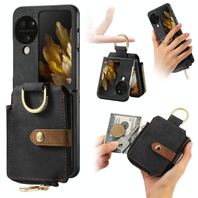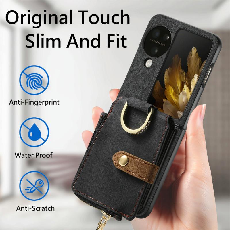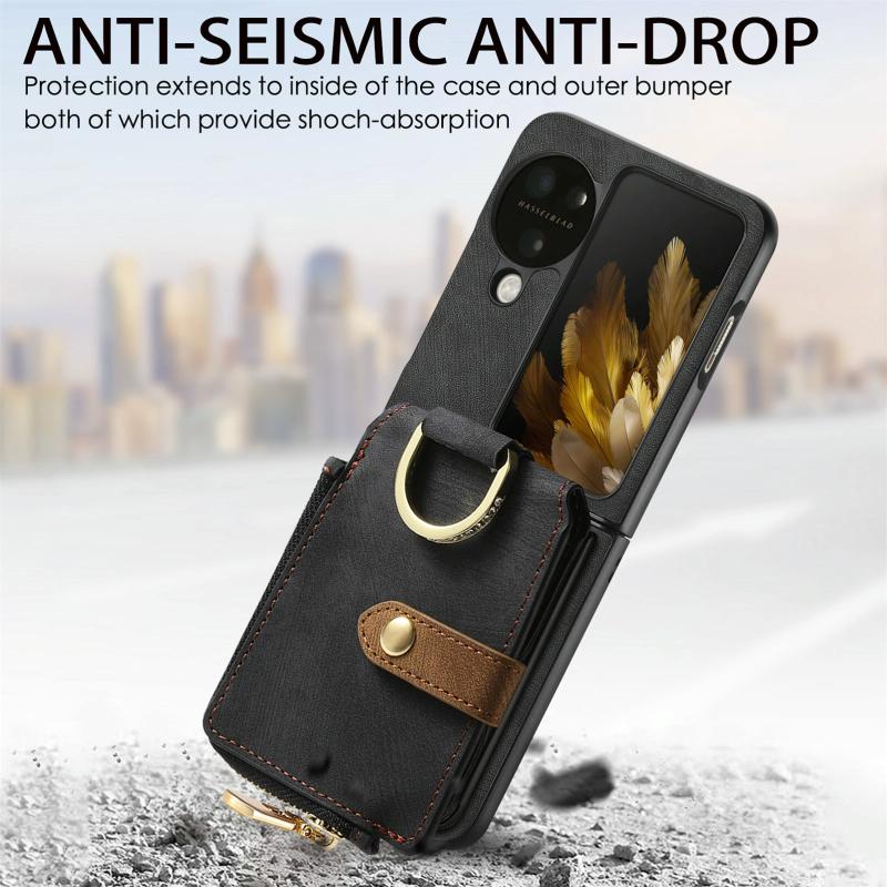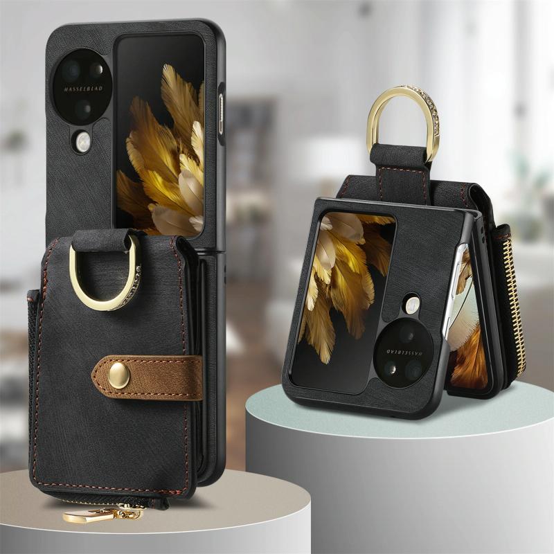 Θήκη τηλεφώνου για OPPO Find N3 με ρετρό υφή, δακτύλιο και πολλαπλές θήκες καρτών (Μαύρο)