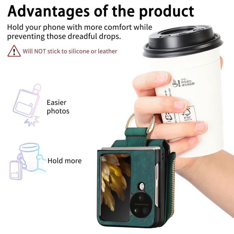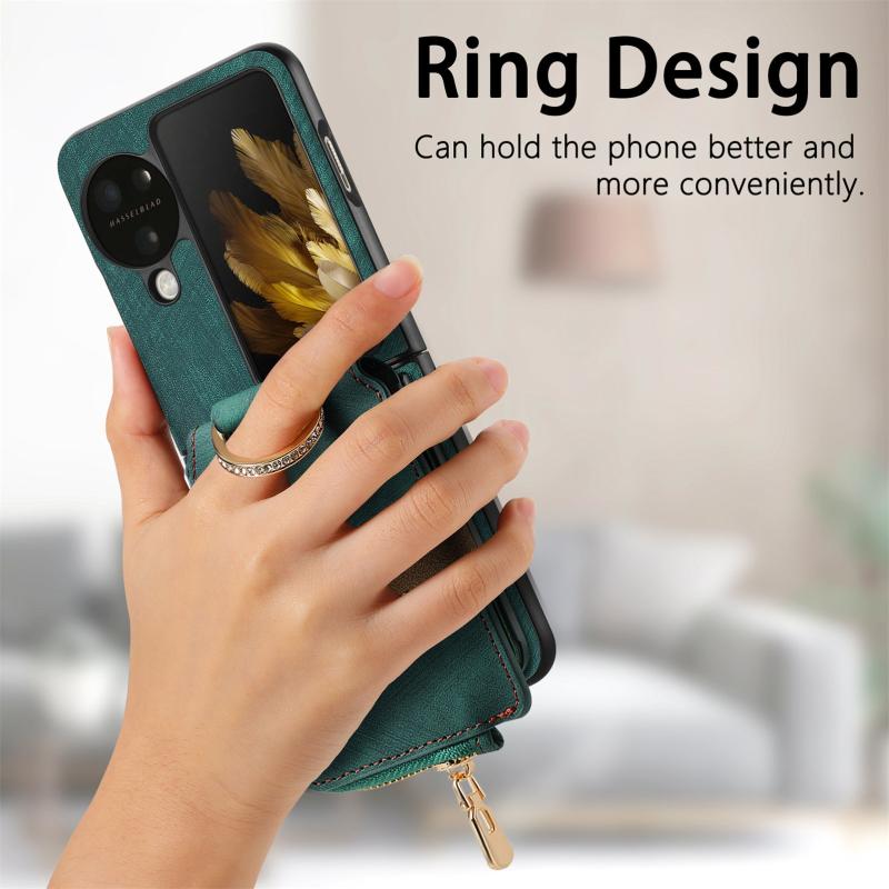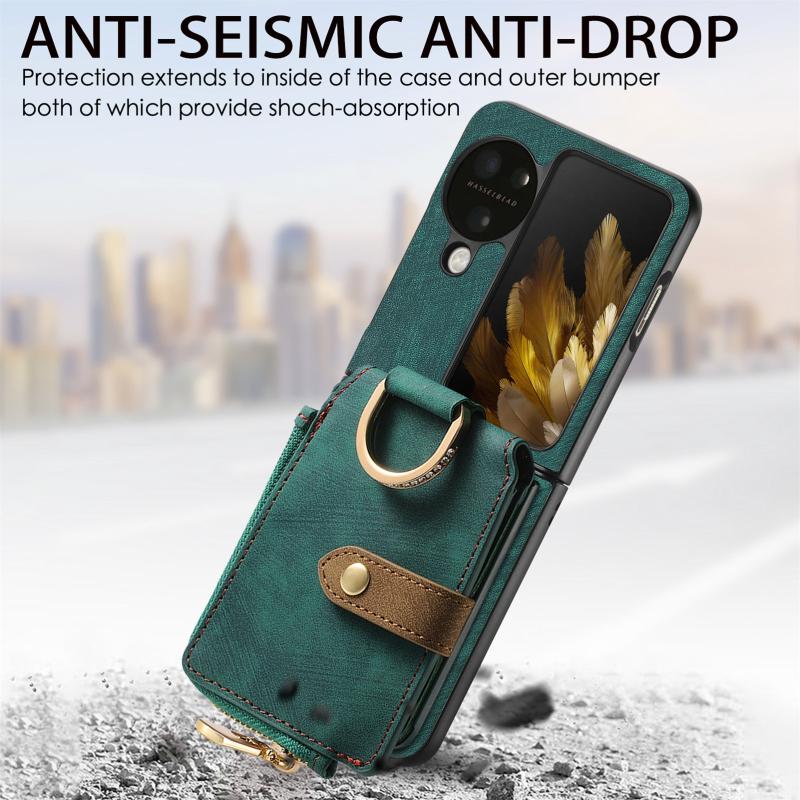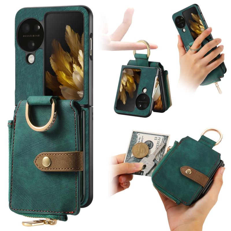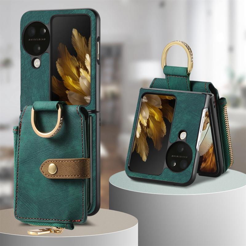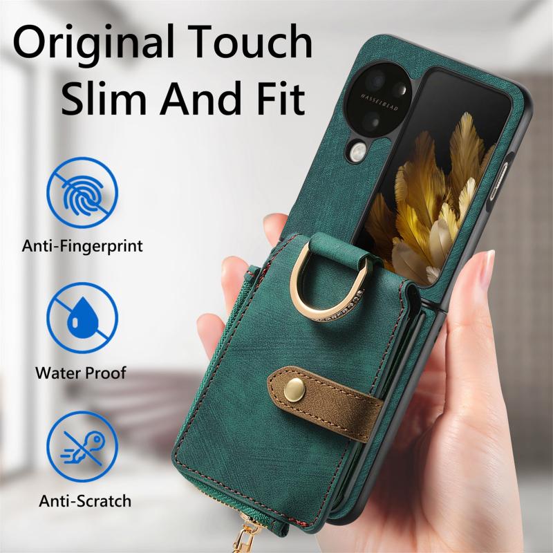 Θήκη τηλεφώνου για OPPO Find N3 με ρετρό υφή, δακτύλιο και πολλαπλές θήκες καρτών (πράσινο)