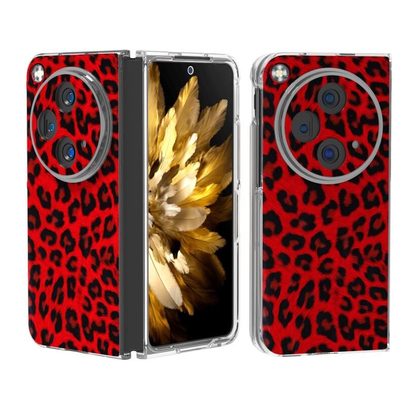 Θήκη κινητού τηλεφώνου για OPPO Find N3 Διαφανές Πλαίσιο Λεοπάρ Μοτίβο Πλήρης Κάλυψη Αντικραδασμική (Λεοπάρδαλη κόκκινη)