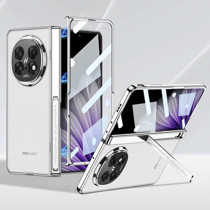 For OPPO Find N5 GKK Magnetic Fold Hinge Side Holder Plain Leather Film Integrated Phone Case(White) (GKK)