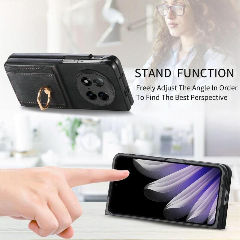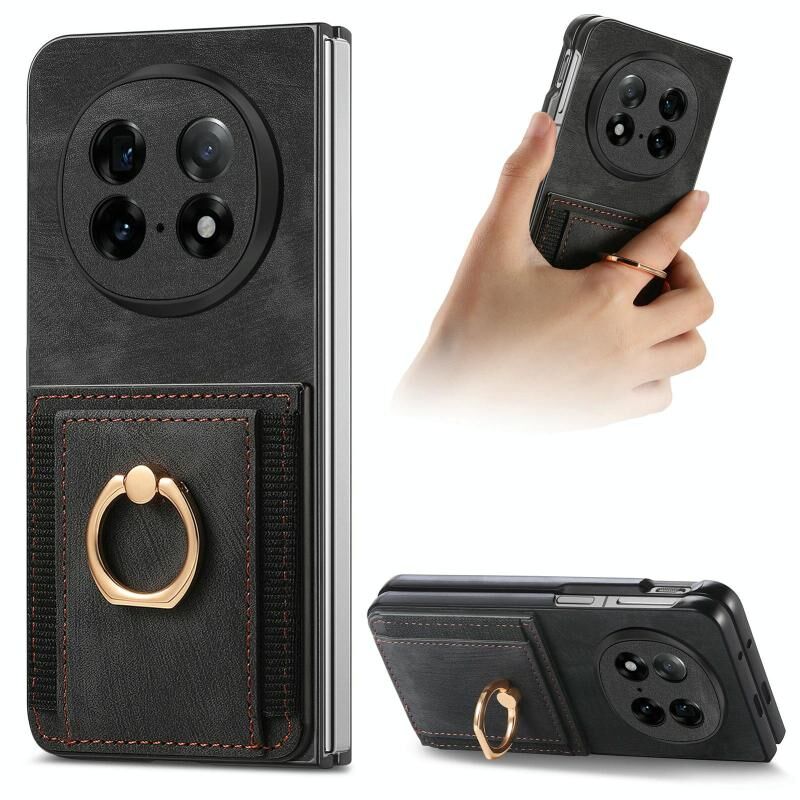 Θήκη τηλεφώνου για OPPO Find N5 με ρετρό υφή, δακτυλίδι και θήκη καρτών (Μαύρο)