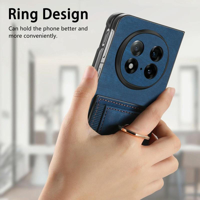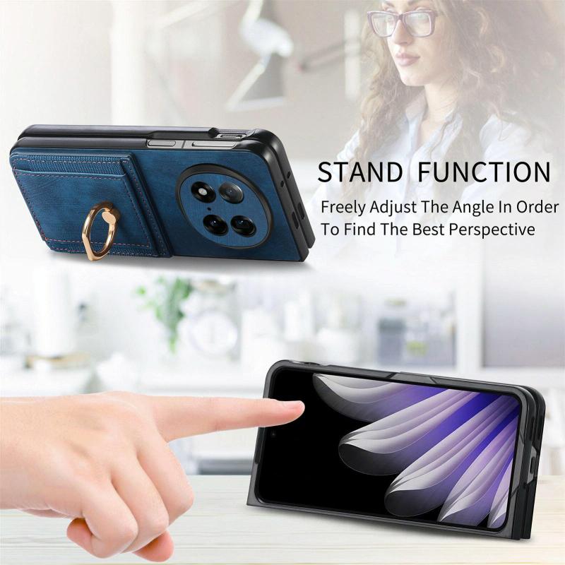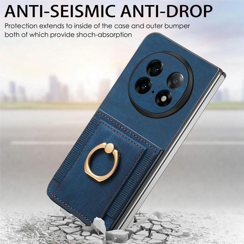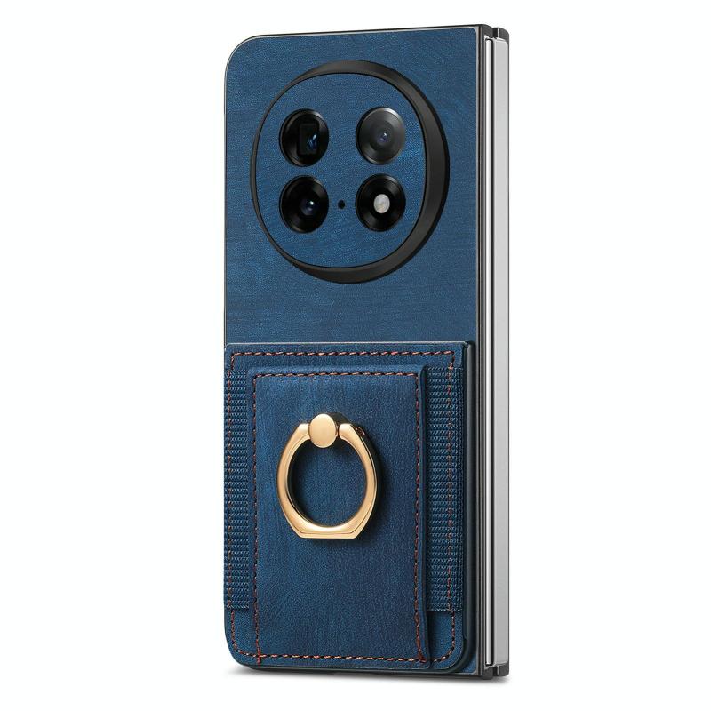For OPPO Find N5 Retro Skin-feel Ring Card Bag Phone Case(Blue)