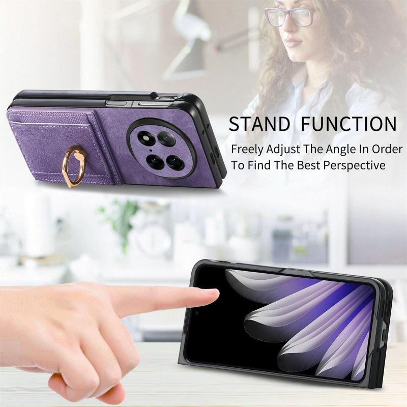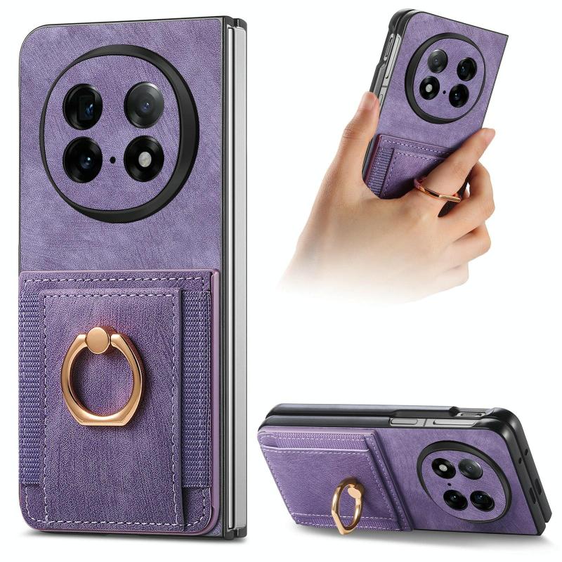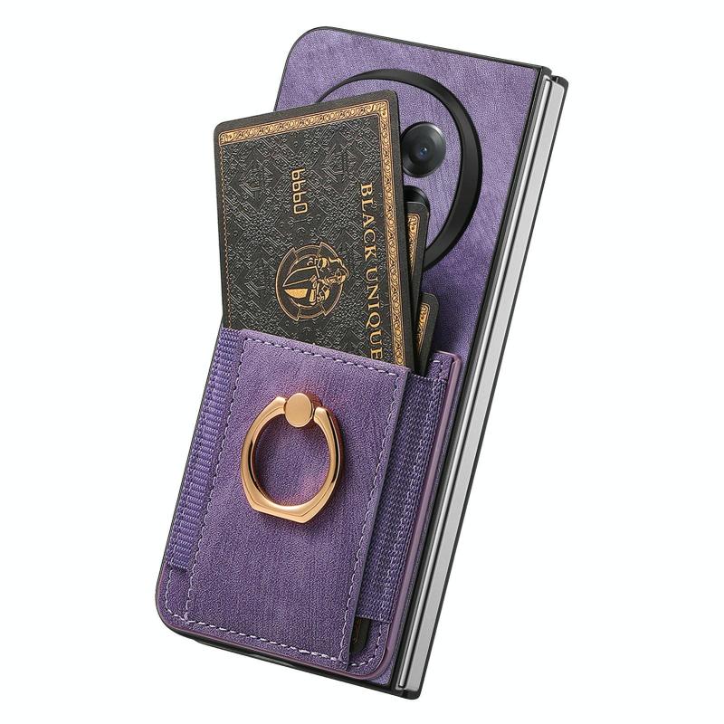 For OPPO Find N5 Retro Skin-feel Ring Card Bag Phone Case(Purple)