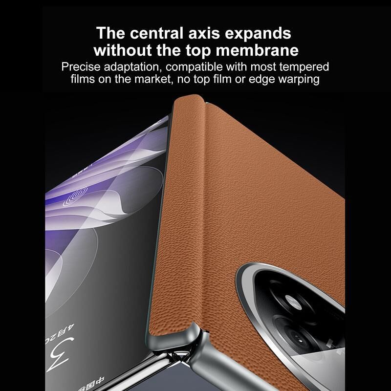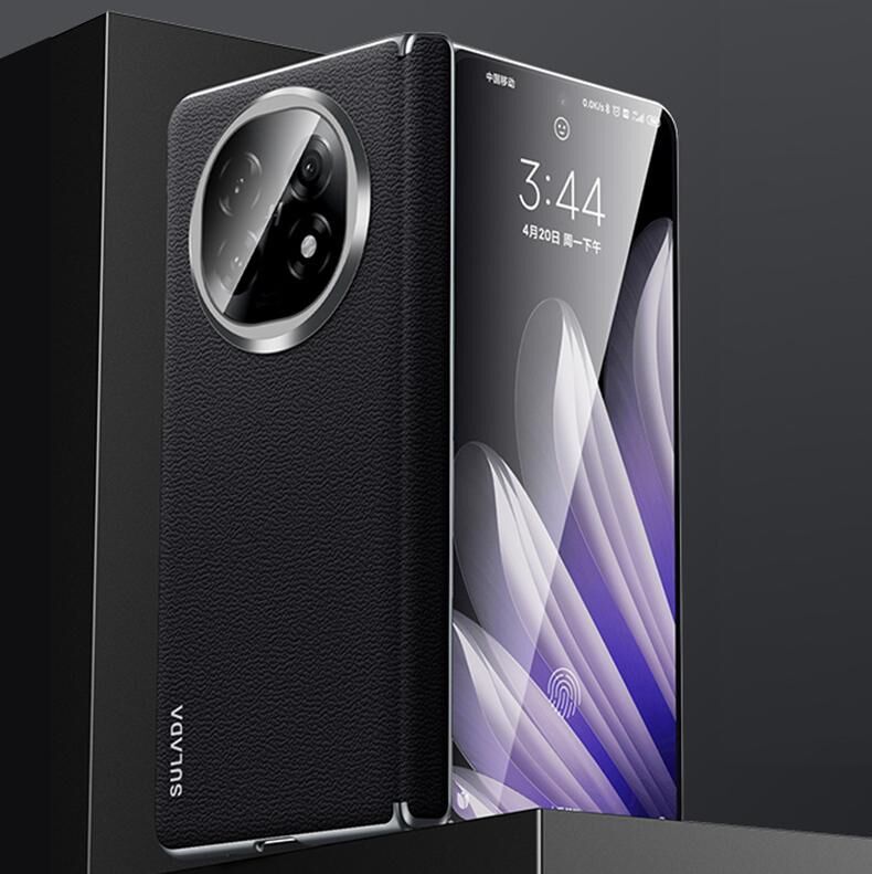 Θήκη κινητού τηλεφώνου υβριδικού τύπου PC από δέρμα αγελάδας χωρίς πλαίσιο, ανώτερης ποιότητας, για OPPO Find N5 SULADA (Μαύρο) (SULADA)