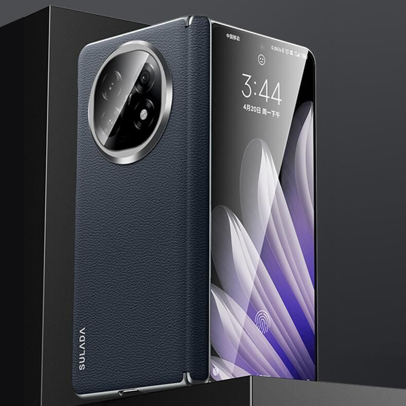 Θήκη κινητού τηλεφώνου υβριδικού τύπου PC από δέρμα αγελάδας χωρίς πλαίσιο, ανώτερης ποιότητας, για OPPO Find N5 SULADA (Μαύρο) (SULADA)
