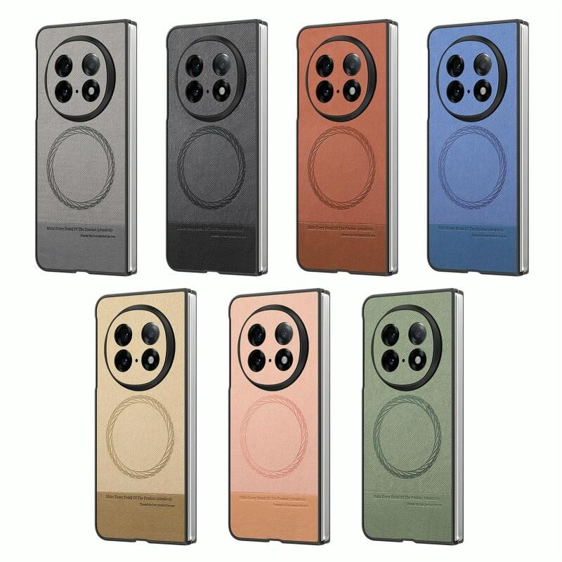 Θήκη τηλεφώνου με μαγνητική πλάτη για OPPO Find N5, από ύφασμα Twill και δέρμα (Μαύρο)