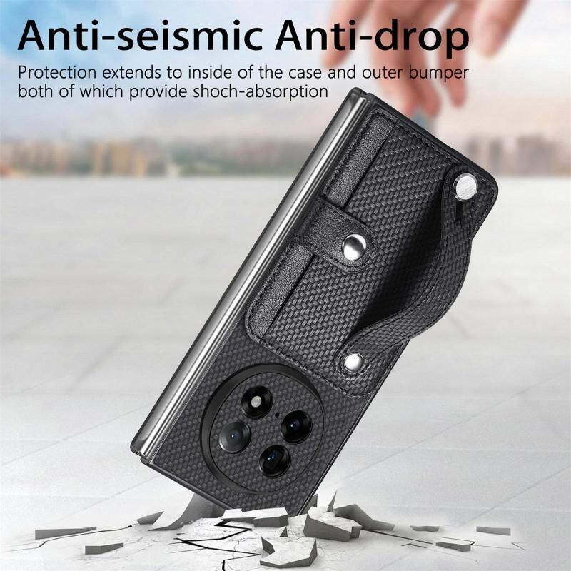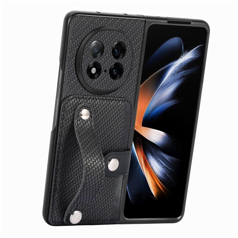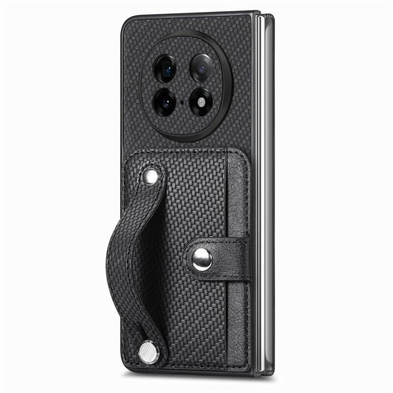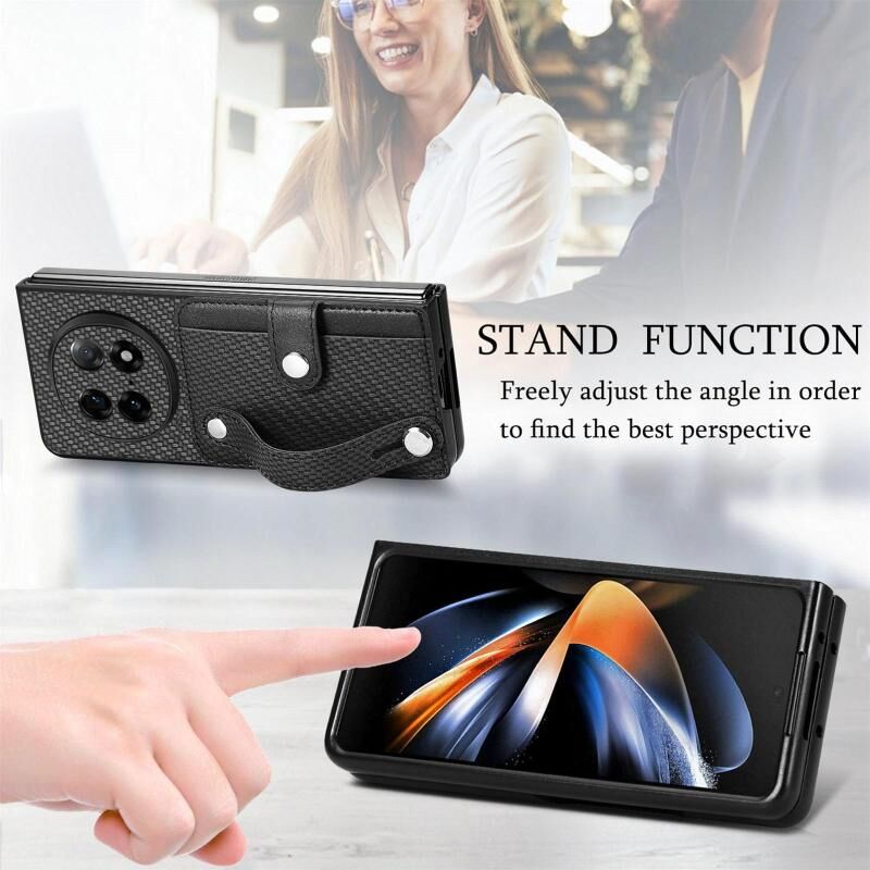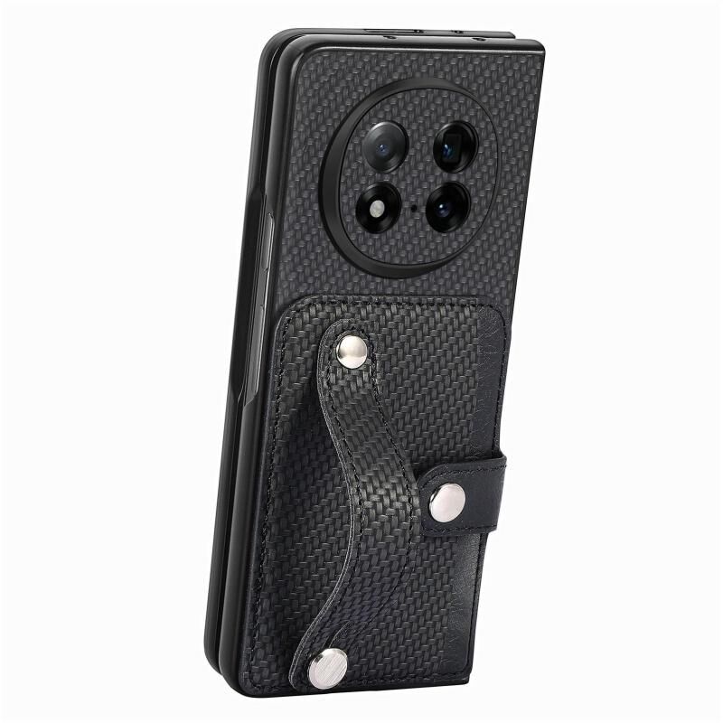 Θήκη κινητού τηλεφώνου για OPPO Find N5 με καρτοθήκη, βάση στήριξης και λουρί καρπού (Μαύρο)