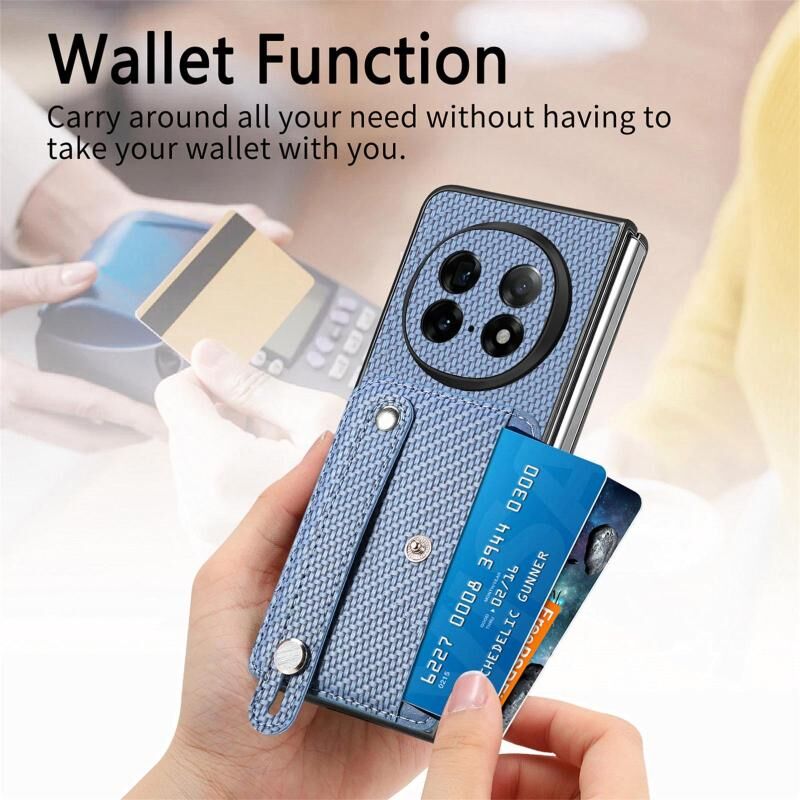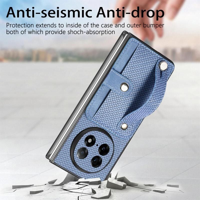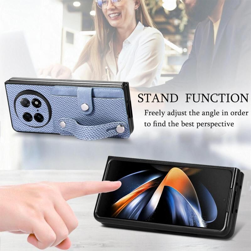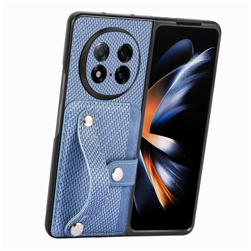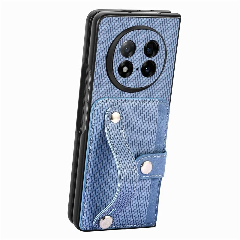 Θήκη κινητού τηλεφώνου για OPPO Find N5 με καρτοθήκη, βάση στήριξης και λουρί καρπού (Μπλε)