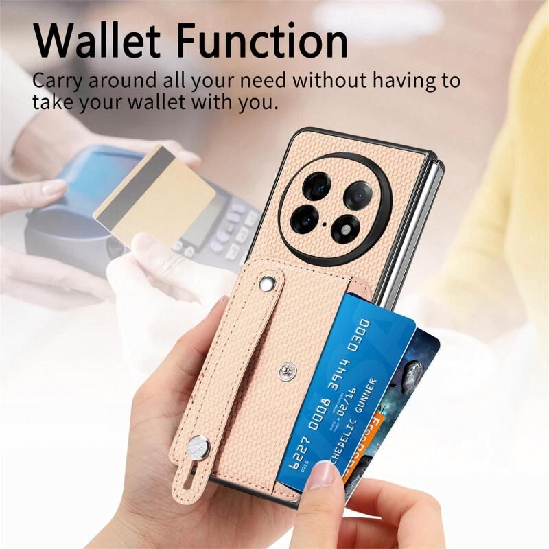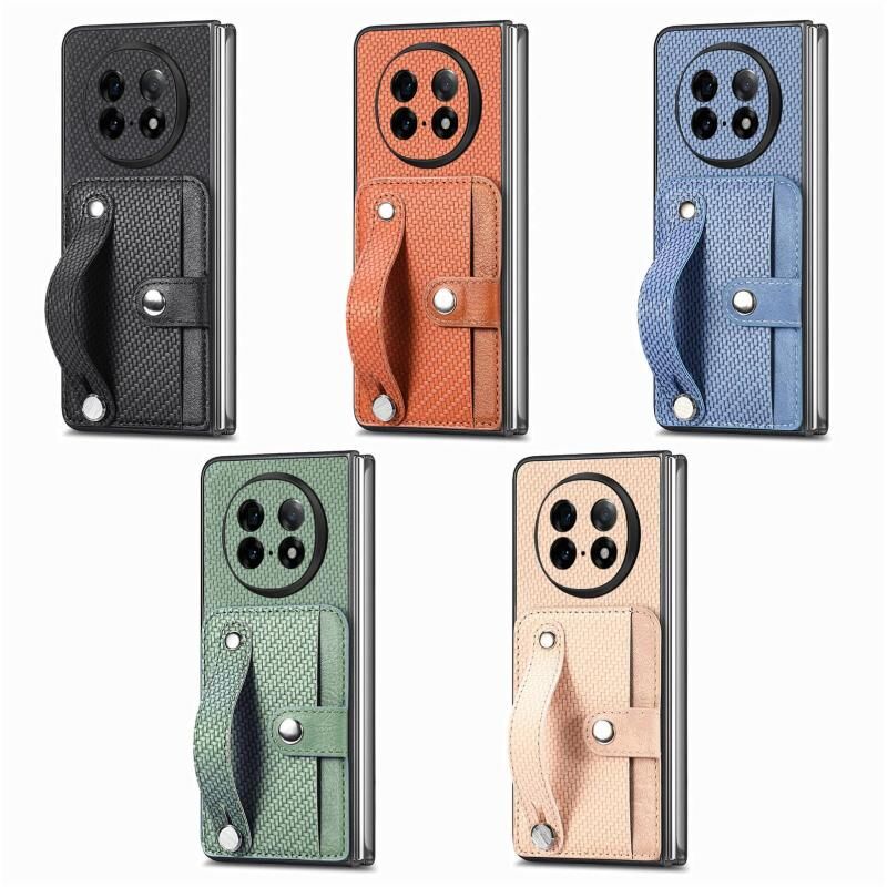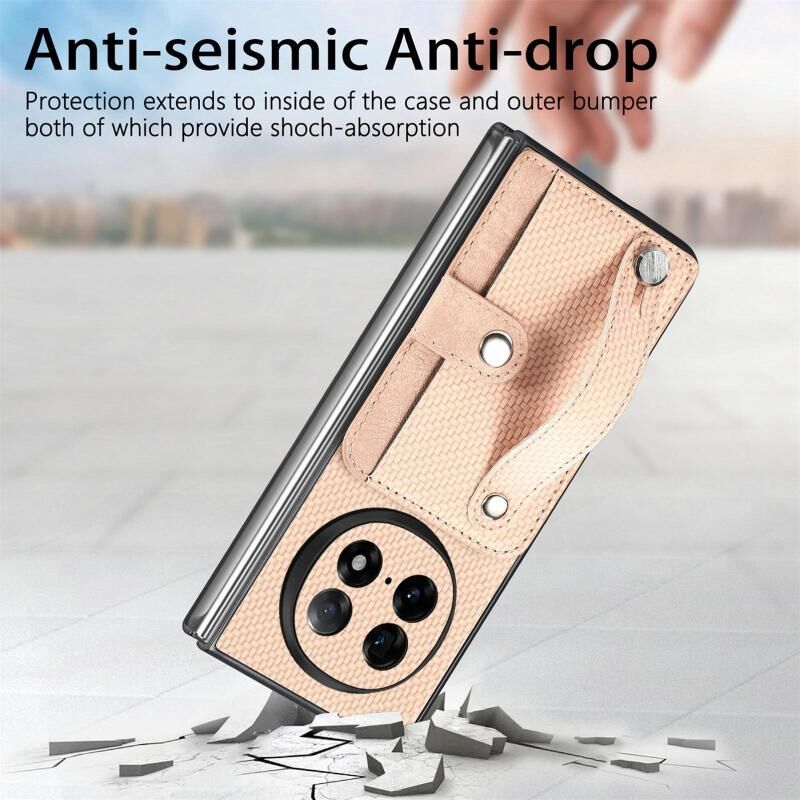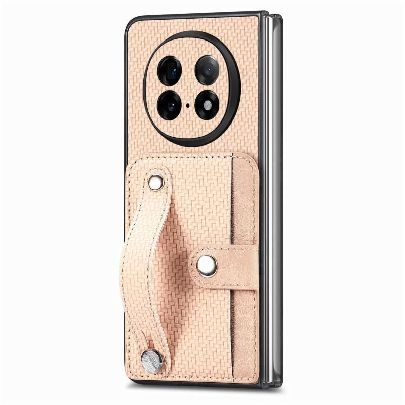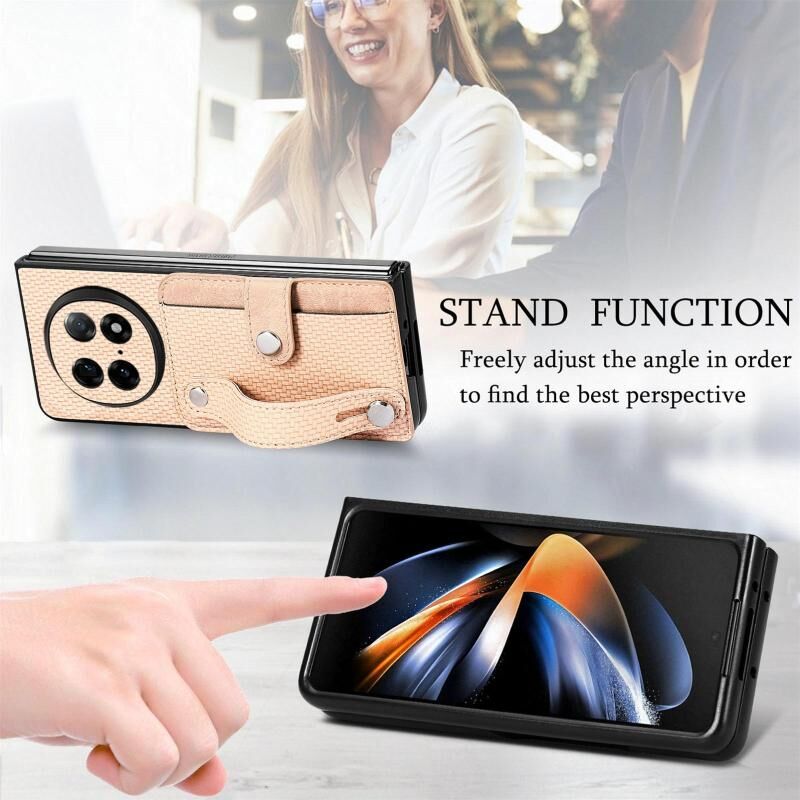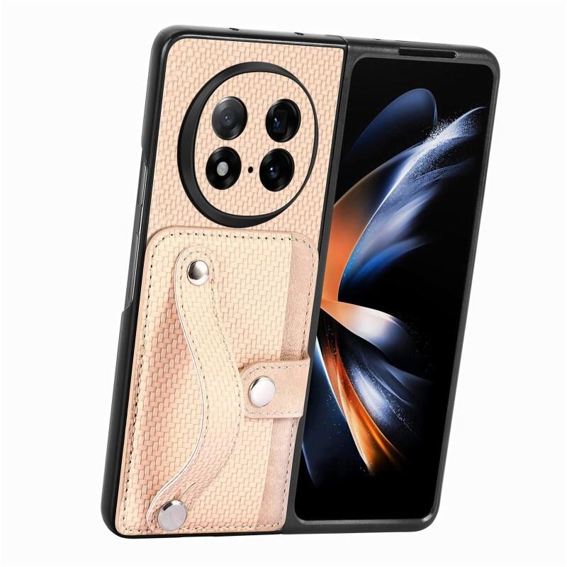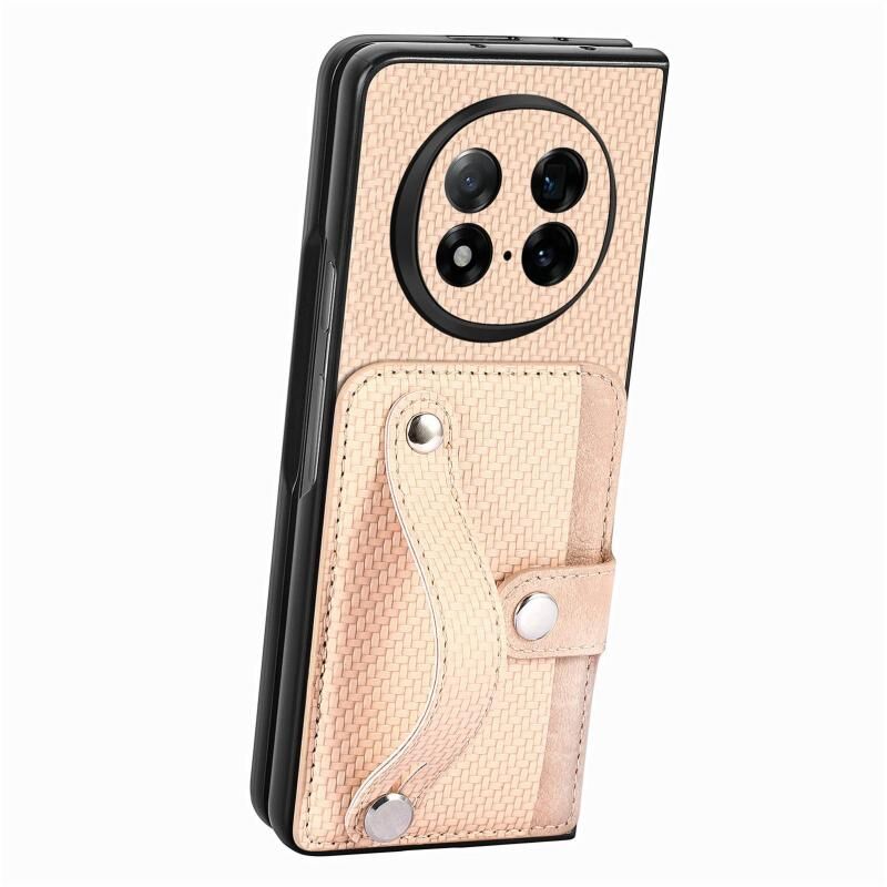 Θήκη κινητού τηλεφώνου για OPPO Find N5 με καρτοθήκη, βάση στήριξης και λουρί καρπού (Χακί)