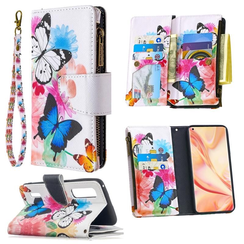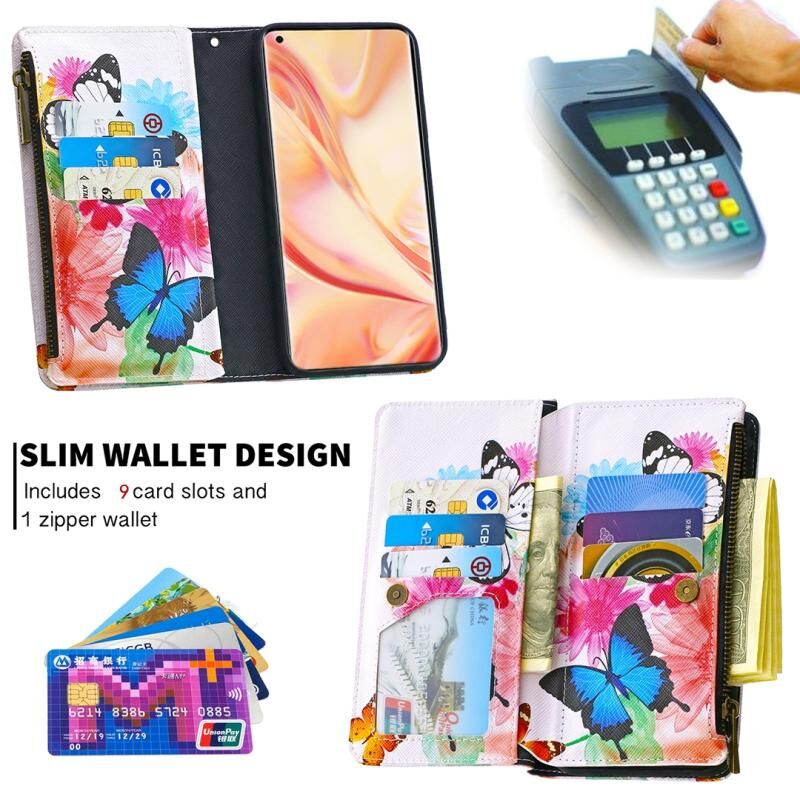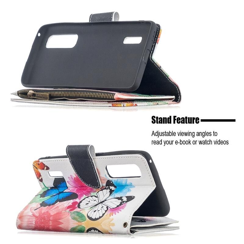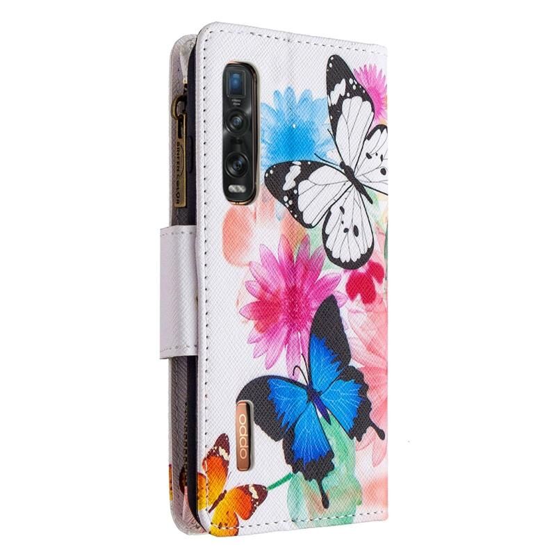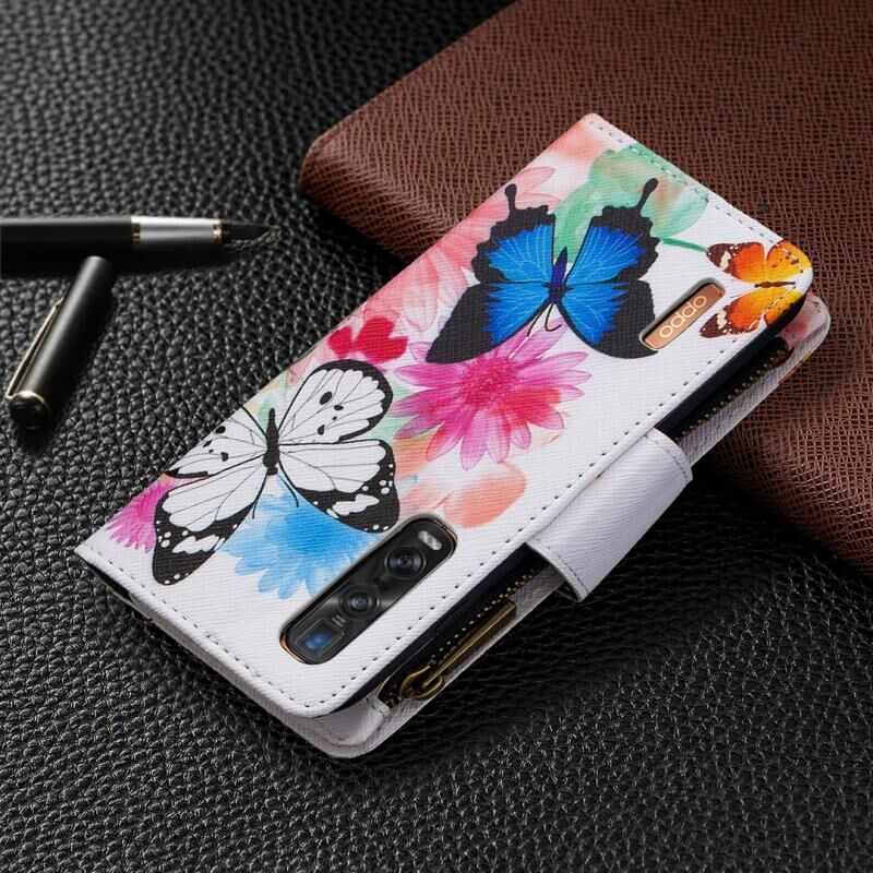 Θήκη δέρματος οριζόντιας αναδίπλωσης με φερμουάρ για OPPO Find S2 Pro με έγχρωμο σχέδιο, βάση στήριξης, θήκες για κάρτες & πορτοφόλι (Κόκκινο)