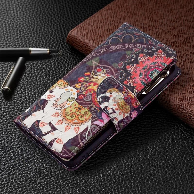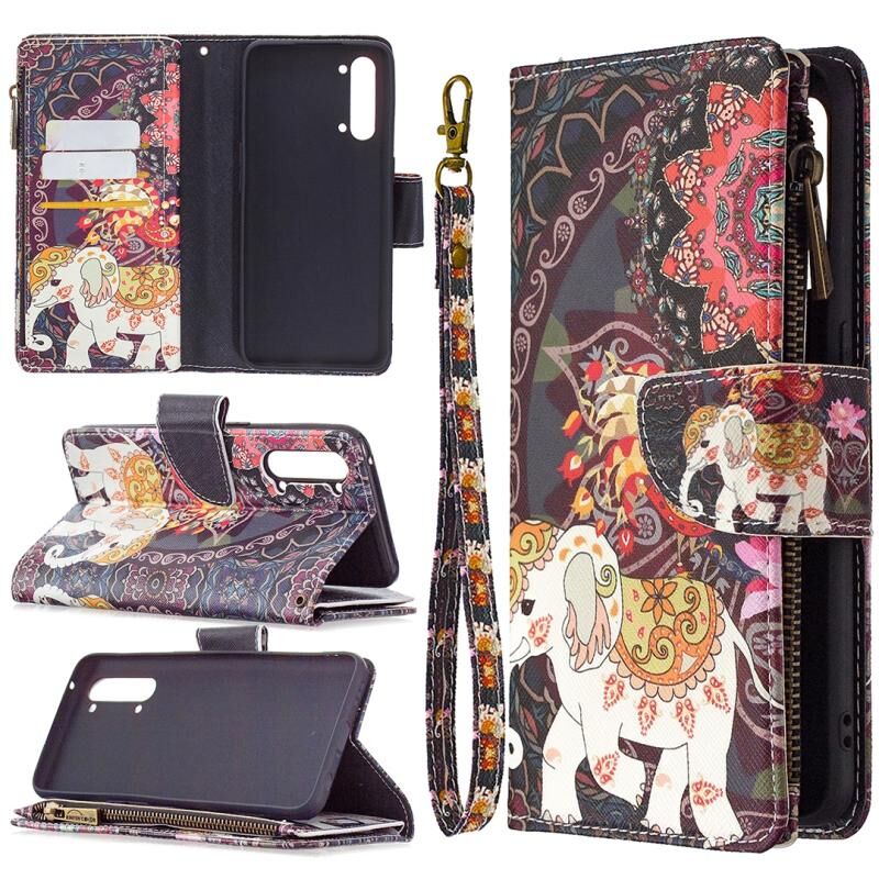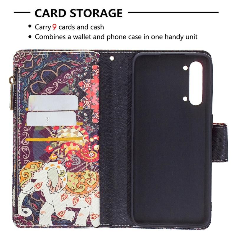 Θήκη δέρματος οριζόντιας αναδίπλωσης με φερμουάρ και σχέδιο πολύχρωμης ζωγραφικής για OPPO Find X2 Lite με βάση στήριξης & υποδοχές καρτών & πορτοφόλι (Κόκκινο)