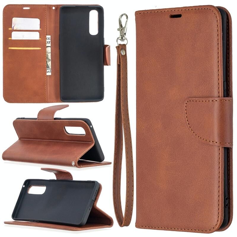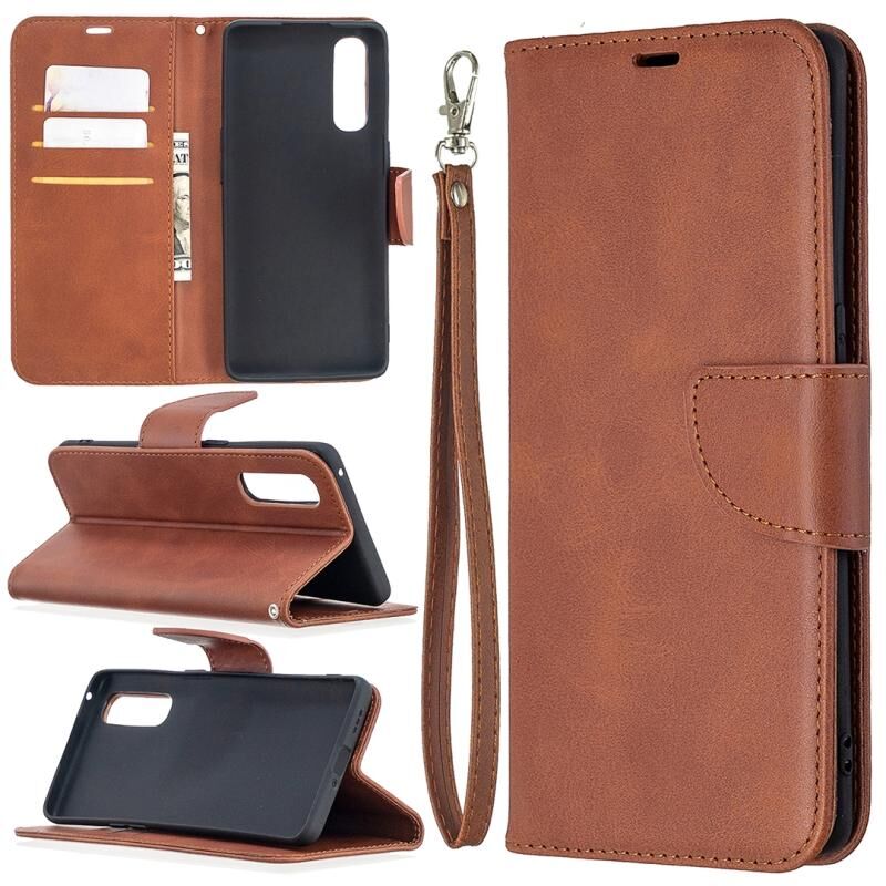 Για OPPO Find X2 Neo Retro Lambskin Texture Pure Color Οριζόντια Flip PU δέρμα υπόθεση, με κάτοχο & υποδοχές καρτών & πορτοφόλι & Lanyard (Καφέ)