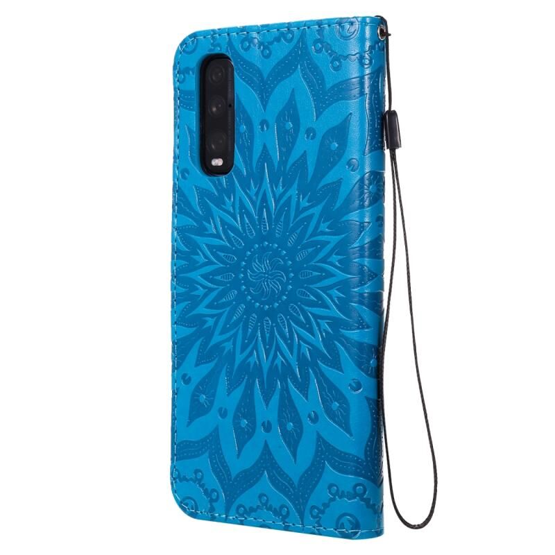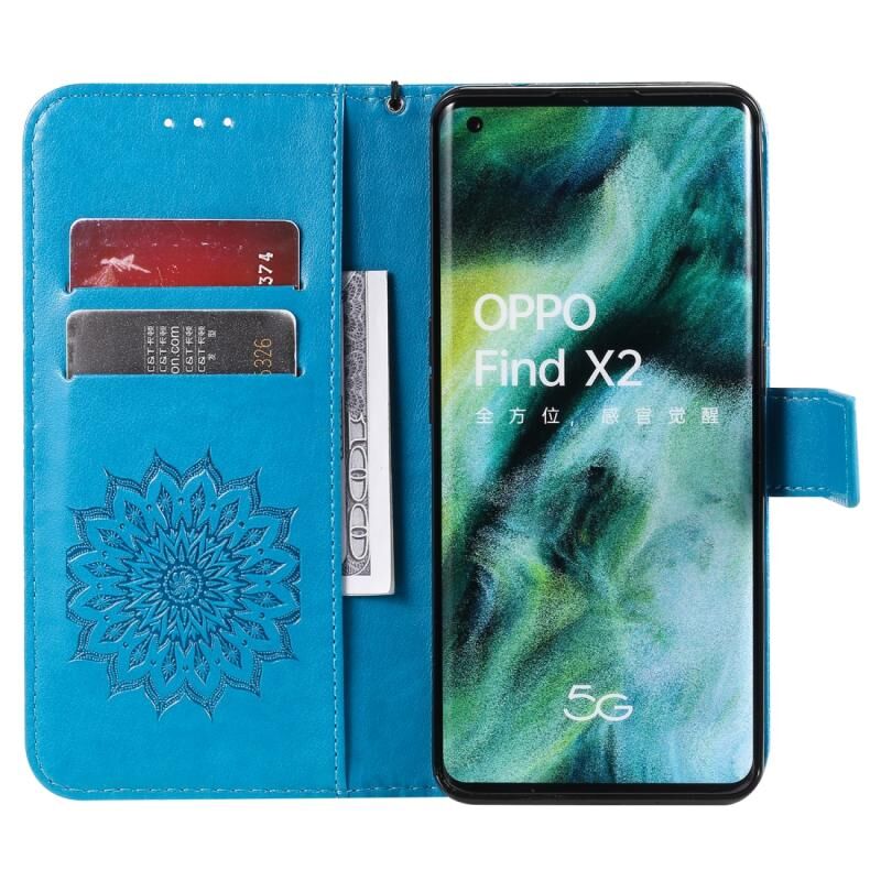 Θήκη για OPPO Find X2 με εκτύπωση ηλιοτροπίου, οριζόντια αναδίπλωση από δερματίνη PU με βάση στήριξης, θήκες για κάρτες, πορτοφόλι & λουρί (Μπλε)