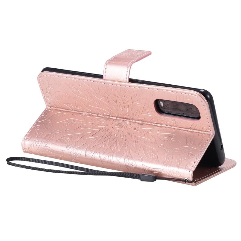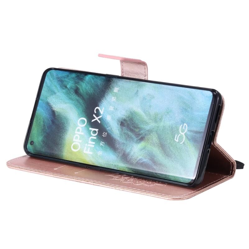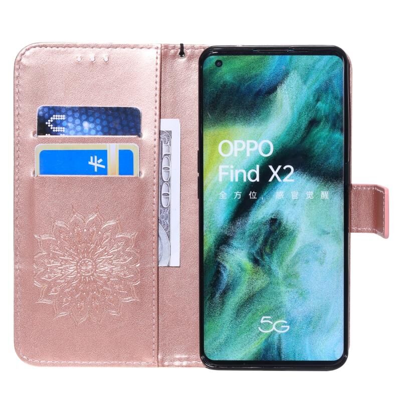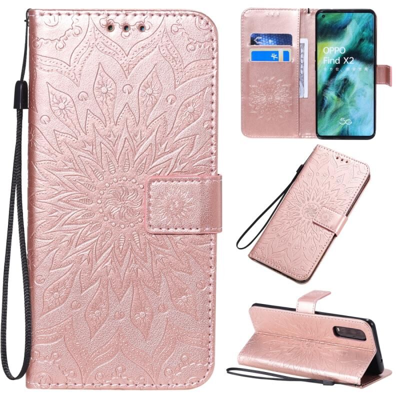 Θήκη για OPPO Find X2, με εκτύπωση ηλιοτροπίου, οριζόντια αναδίπλωση, από δερματίνη PU, με βάση στήριξης, θήκες για κάρτες, πορτοφόλι & λουρί (Χρυσό Ροζ)