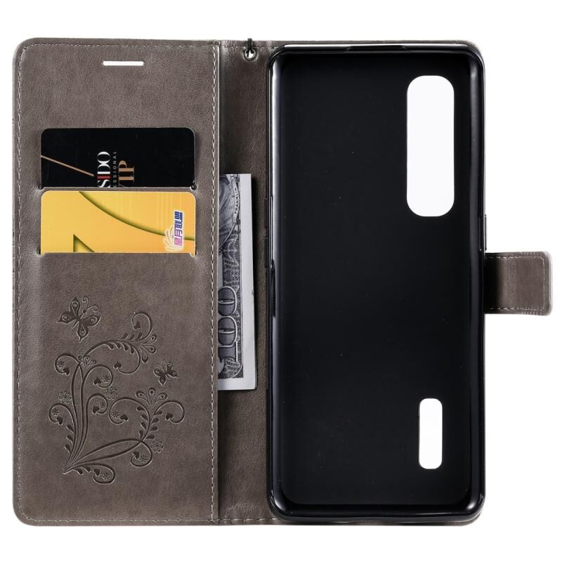 Θήκη δέρματος οριζόντιας αναδίπλωσης για OPPO Find X2 Pro με ανάγλυφο σχέδιο 3D πεταλούδων, με βάση στήριξης, θήκη καρτών, πορτοφόλι και λουρί (Γκρι)