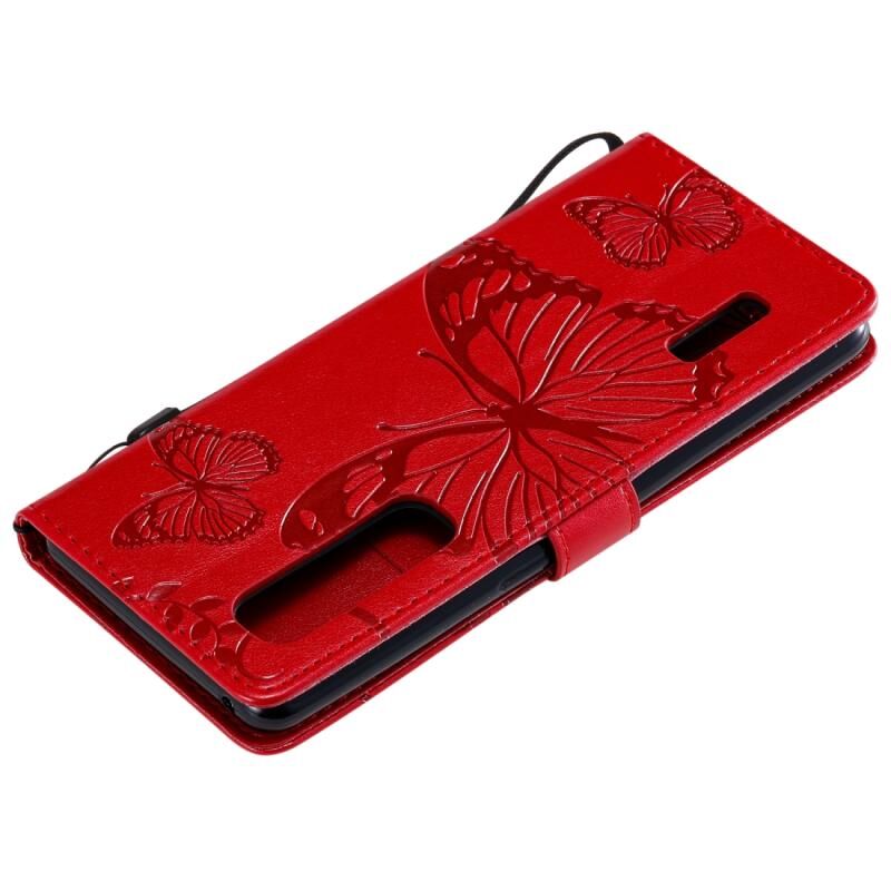 Θήκη δέρματος οριζόντιας αναδίπλωσης για OPPO Find X2 Pro με ανάγλυφο σχέδιο 3D πεταλούδων, με βάση στήριξης, θήκη καρτών, πορτοφόλι και λουρί (Κόκκινο)