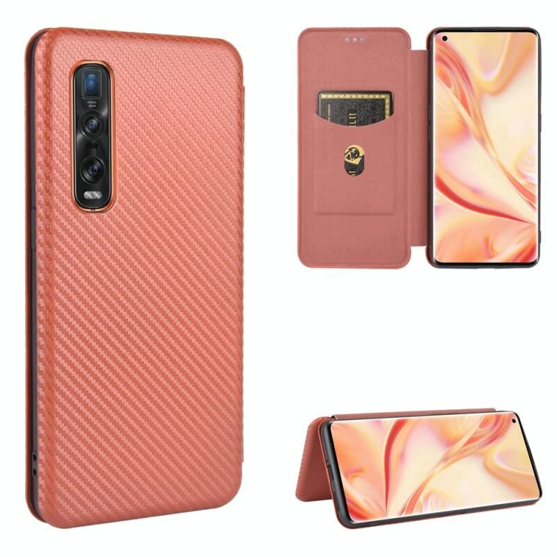Για OPPO Find X2 Pro Carbon Fiber Texture Οριζόντια Flip TPU + PC + PU δέρμα υπόθεση με υποδοχή κάρτας (καφέ)