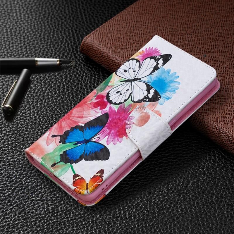 Θήκη δέρματος οριζόντιας αναδίπλωσης για OPPO Find X2 Pro με έγχρωμο σχέδιο, βάση στήριξης & θήκες καρτών & πορτοφόλι (Πεταλούδες)