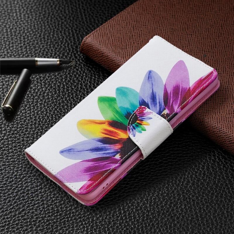Θήκη δέρματος οριζόντιας αναδίπλωσης με σχέδιο πολύχρωμης ζωγραφικής για OPPO Find X2 Pro με βάση & υποδοχές καρτών & πορτοφόλι (Ηλίανθος)