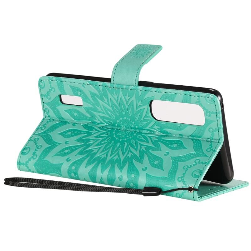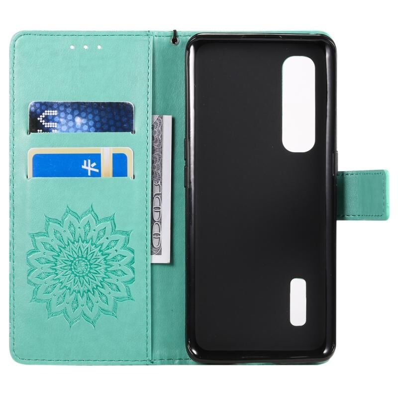 Θήκη για OPPO Find X2 Pro με εκτύπωση Pressed Printing, σχέδιο ηλίανθου, οριζόντια αναδίπλωση, από δερματίνη PU με βάση στήριξης, θήκες για κάρτες, πορτοφόλι & λουρί (πράσινο)