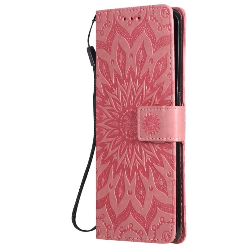 Θήκη για OPPO Find X2 Pro με εκτύπωση Pressed Printing, σχέδιο ηλίανθου, οριζόντια αναδίπλωση, από δερματίνη PU με βάση στήριξης, θήκες για κάρτες, πορτοφόλι & λουρί (ρόζ)