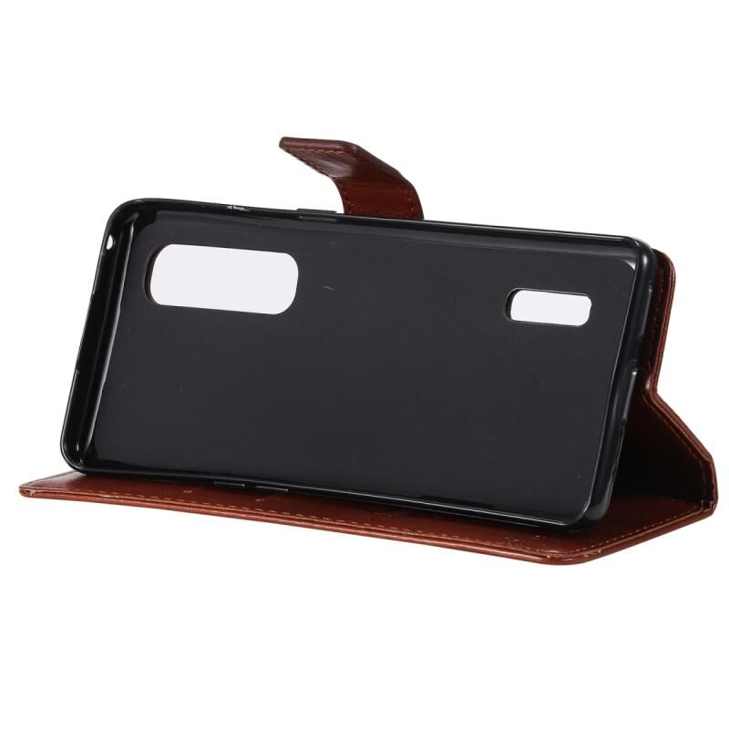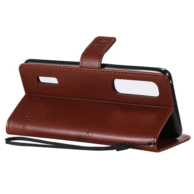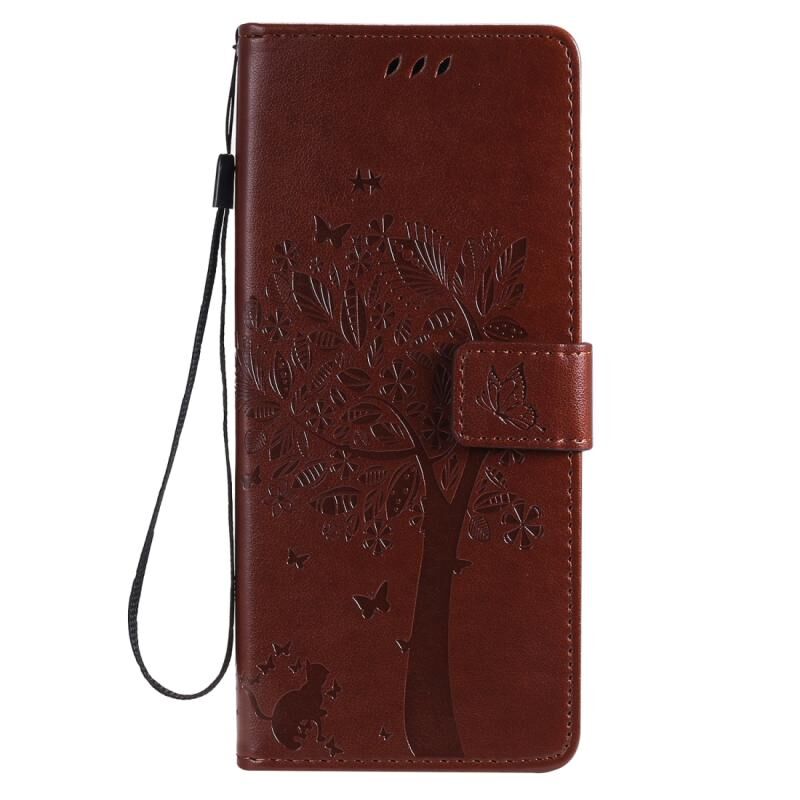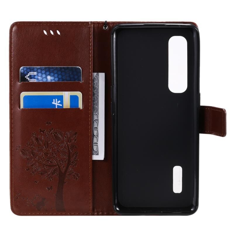 Θήκη για OPPO Find X2 Pro με σχέδιο Δέντρου & Γάτας, εκτύπωση με πίεση, οριζόντια αναδίπλωση, από δερματίνη PU με βάση στήριξης & θήκες για κάρτες & πορτοφόλι & κορδόνι (Καφέ)