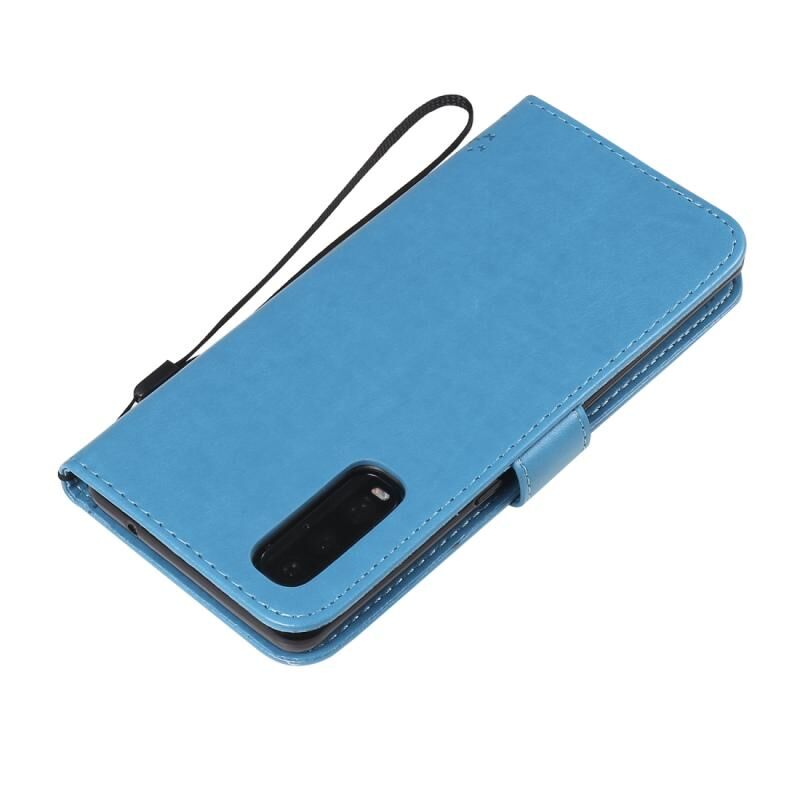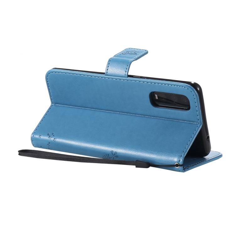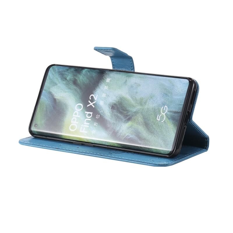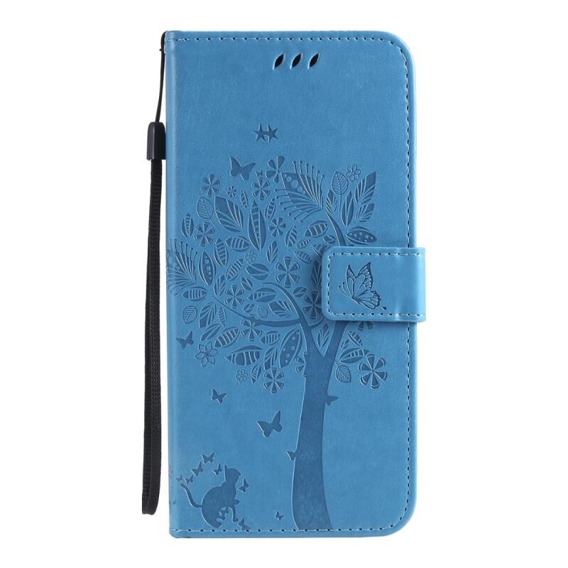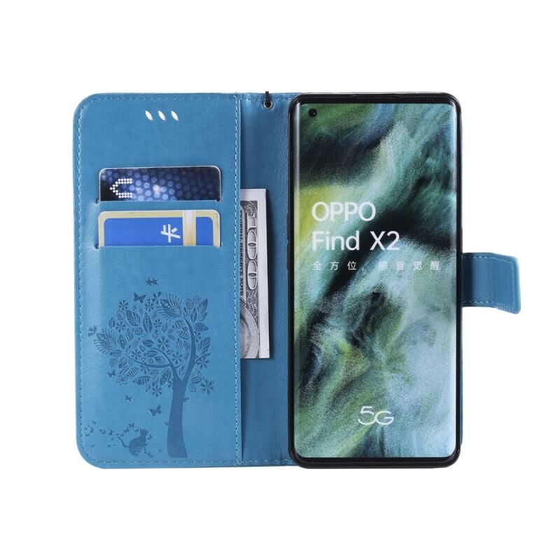 Θήκη για OPPO Find X2 με σχέδιο Δέντρου & Γάτας, με εκτύπωση σε PU δέρμα, οριζόντια αναδίπλωση, με βάση στήριξης, θήκες για κάρτες, πορτοφόλι & λουρί (Μπλε)