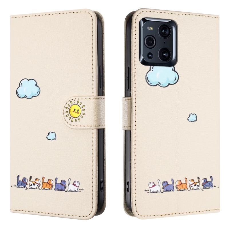 For OPPO Find X3 Cartoon Cats Leather Phone Case(Beige White)