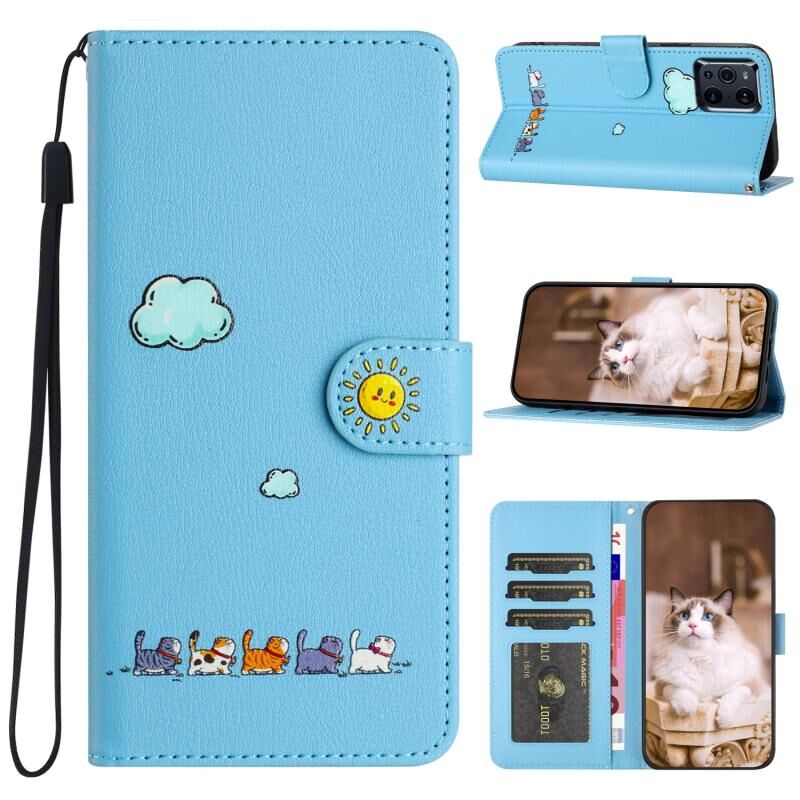 Θήκη τηλεφώνου από δέρμα με σχέδια καρτούν γάτας για OPPO Find X3 (Κόκκινο)