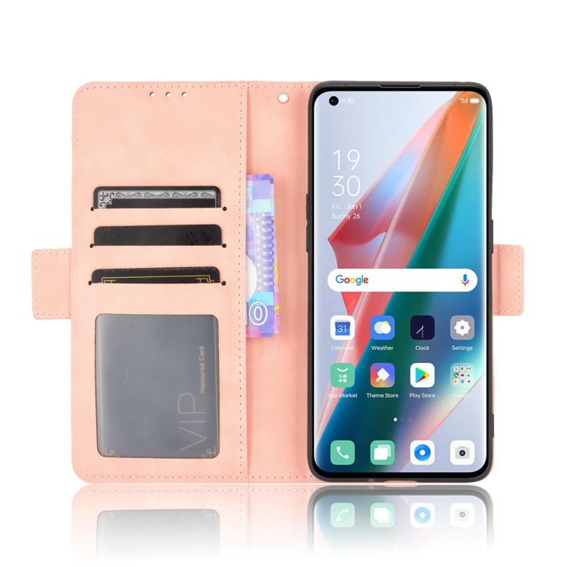 Θήκη δέρματος οριζόντιας αναδίπλωσης για OPPO Find X3 / Find X3 Pro με υφή δέρματος μοσχαριού, με βάση στήριξης & υποδοχές καρτών & κορνίζα φωτογραφιών (Ροζ)